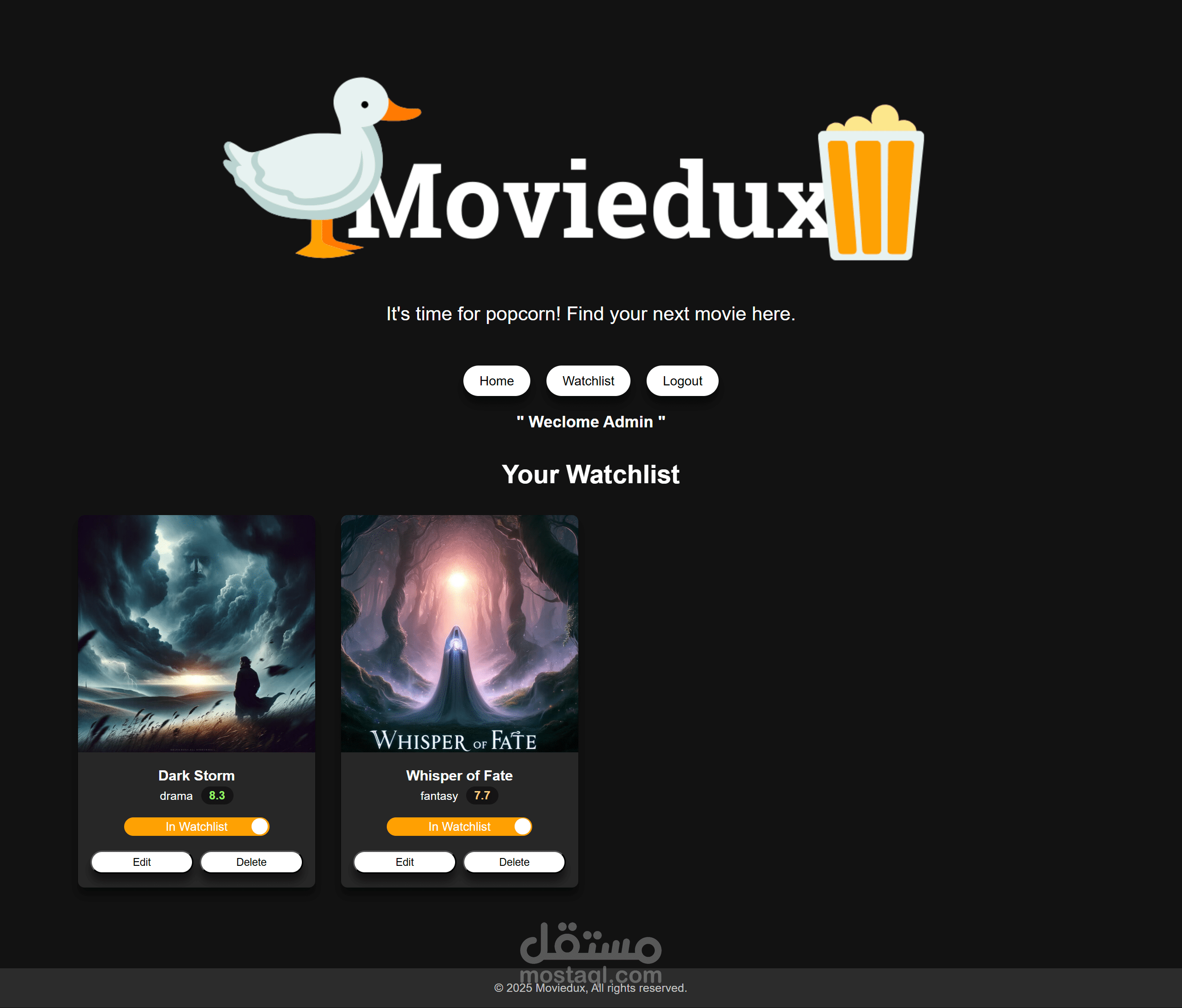 صفحة تعديل فيلم (Edit): تتيح للمستخدمين تعديل بيانات الأفلام التي قاموا بإنشائها.