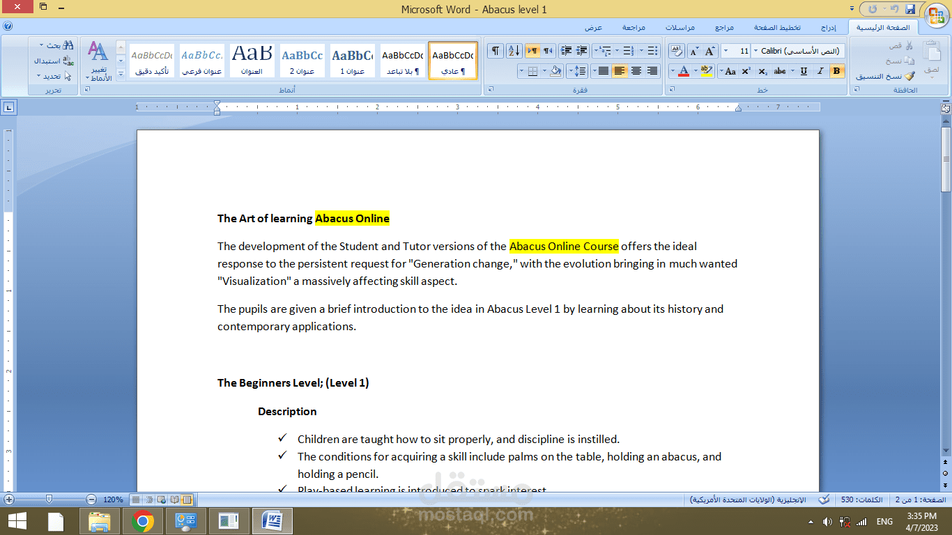 العمل عبارة عن كتابة محتوى لموقع إلكتروني تعليمي، المحتوى إبداعي ترويجي للحث على الاشتراك في الدورات المقدمة من قبل الموقع التعليمي.