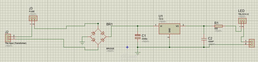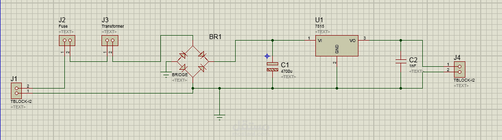 Design and implement an electronic circuit for power supply its output is 15 V DC and input is 220 V AC