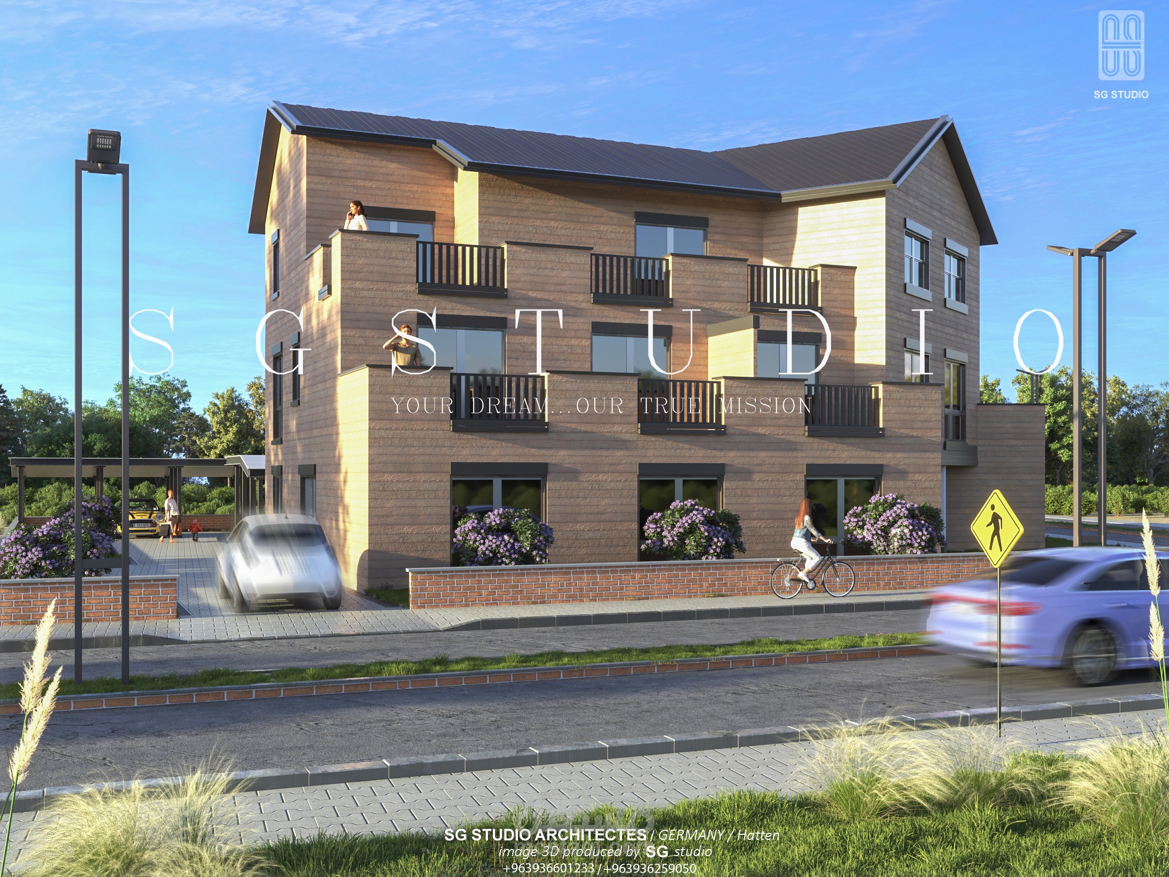 تم تصميم خارجي لمبنى بسيط , حيث يتناسب مع بيئة المكان المتواجد بها , يُظهر بساطة مواد الإكساء ووجود اتصال بصري مع البيئة المحيطة , وبالتالي تحقيق الغاية من المشروع على أكمل وجه .
