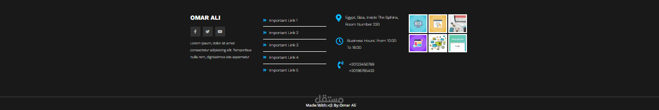 "لقد أنشأت موقعًا إلكترونيًا باستخدام HTML و CSS والرسوم المتحركة، وقد صممته ليكون مستجيبًا لشاشات الهاتف المحمول، مما يعني أن موقع الويب يعرض جيدًا ويعمل بشكل مثالي على الأجهزة المحمولة. يتضمن الموقع عنوانًا نصه «أي نص» وفقرة من النص توفر بعض المحتوى الأساسي حول الموقع. لقد أضفت أيضًا بعض الرسوم المتحركة لجعل موقع الويب ممتعًا وجذابًا للمستخدمين. من خلال تصميم موقع الويب للاستجابة لشاشات الهاتف المحمول، يوفر موقع الويب تجربة مستخدم سلسة ورائعة، بغض النظر عن الجهاز المستخدم.