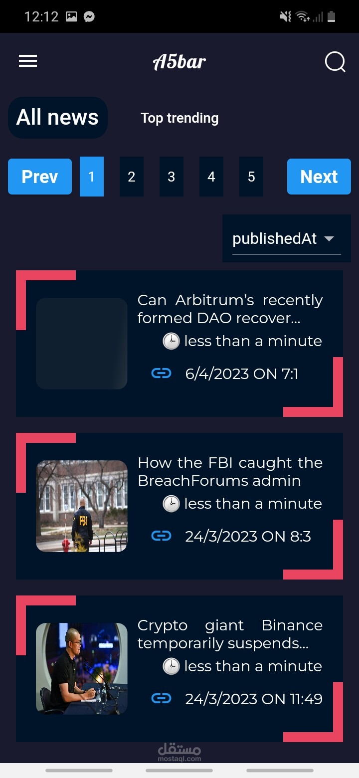 A5bar: يستخدم التطبيق خوارزميات متقدمة لتنظيم موجز أخبار مخصص لكل مستخدم بناءً على اهتماماته وسجل التصفح والموقع. يضمن ذلك حصول المستخدمين على مقالات إخبارية ذات صلة تلبي تفضيلاتهم