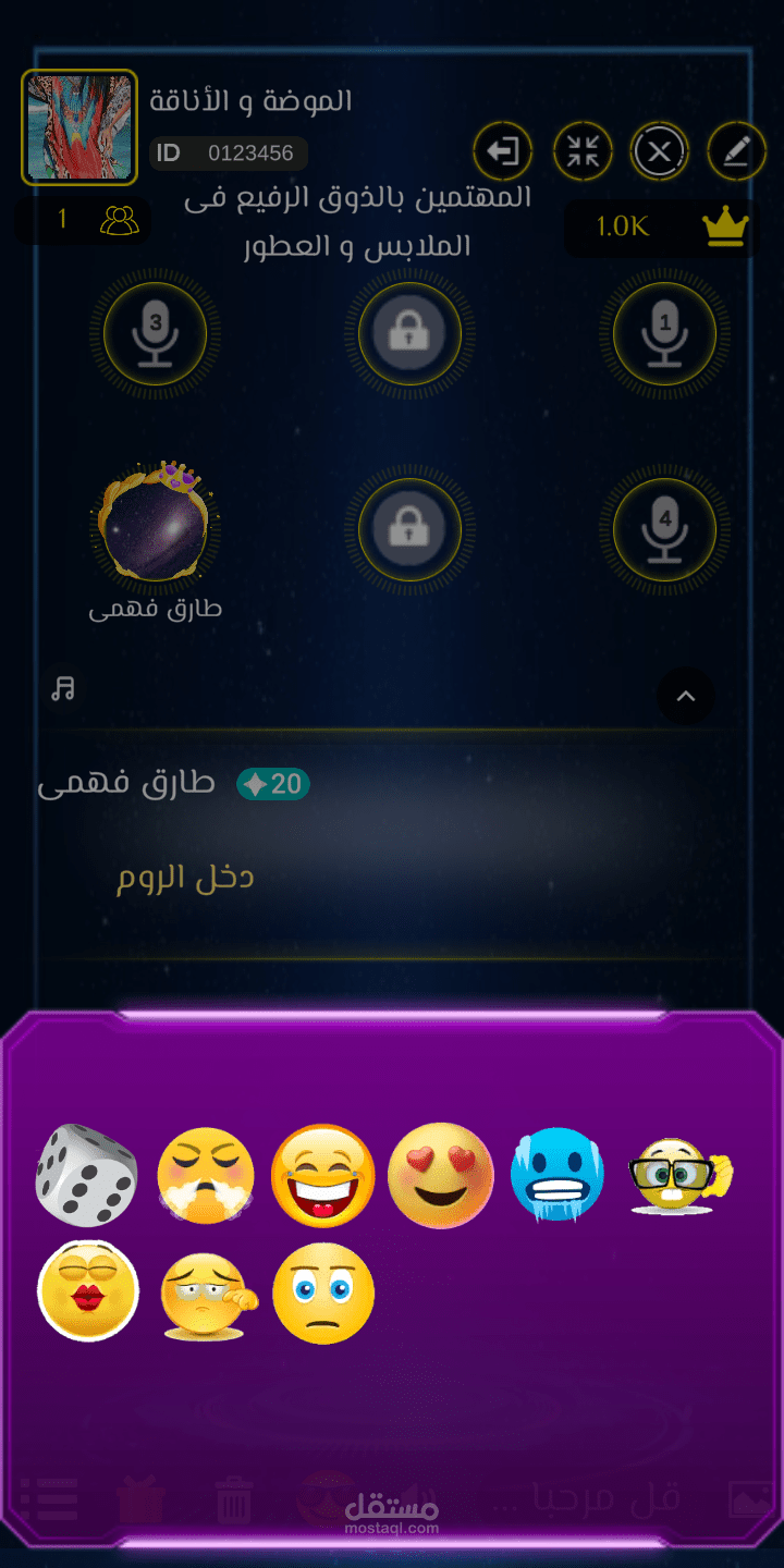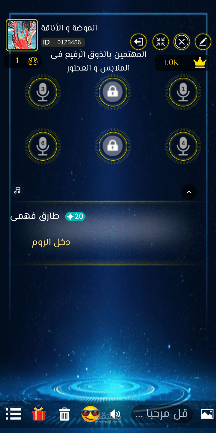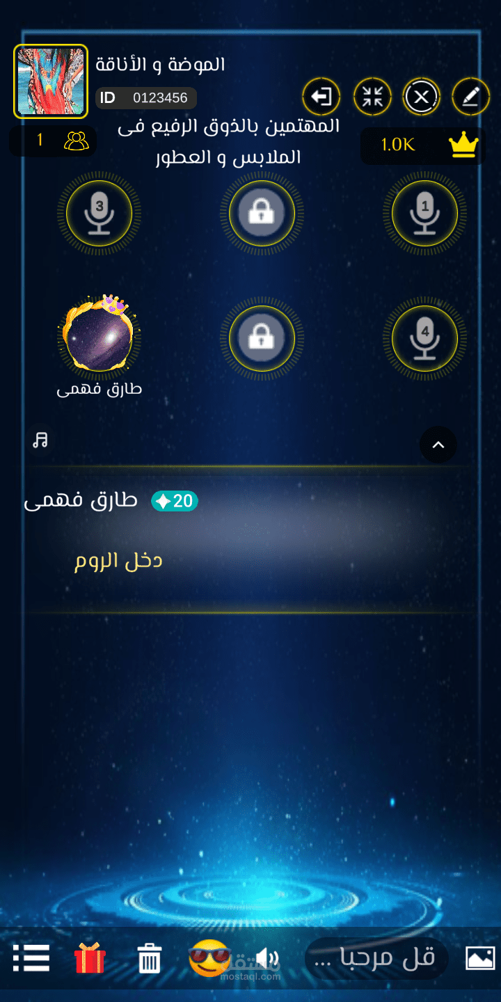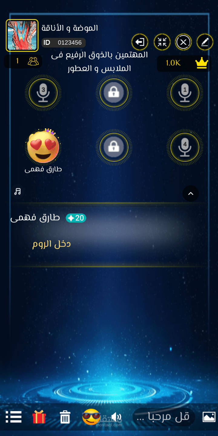 بروفايل كامل لكل مستخدم فيه رتبته و الايدي الخاص به و معلومات عنه و المسابقات التي ربحها و الهدايا التي اهديت له او اهداها لأحد مع امكانية تتبع المستخدم في اي غرفة او اضافته كصديق و التحدث اليه خاص متل الواتس اب بالضبط
