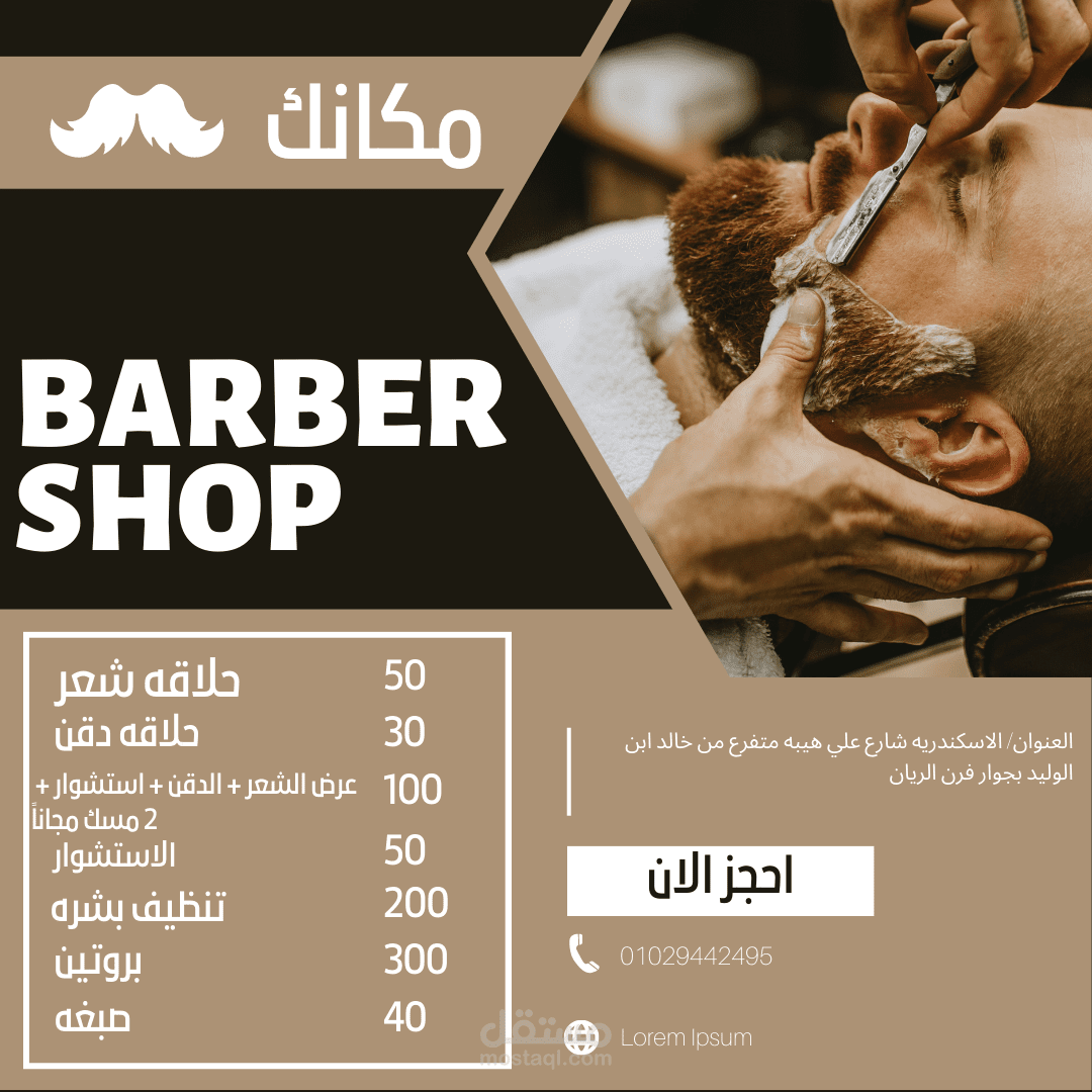 انني قمت بعمل لوجو احترافي لصالون حلاقه بشكل مميز وسلس وقمت ايضاً بعمل منيو من خلال ادرجو داخل اللوجو بشكل منظم وجذاب