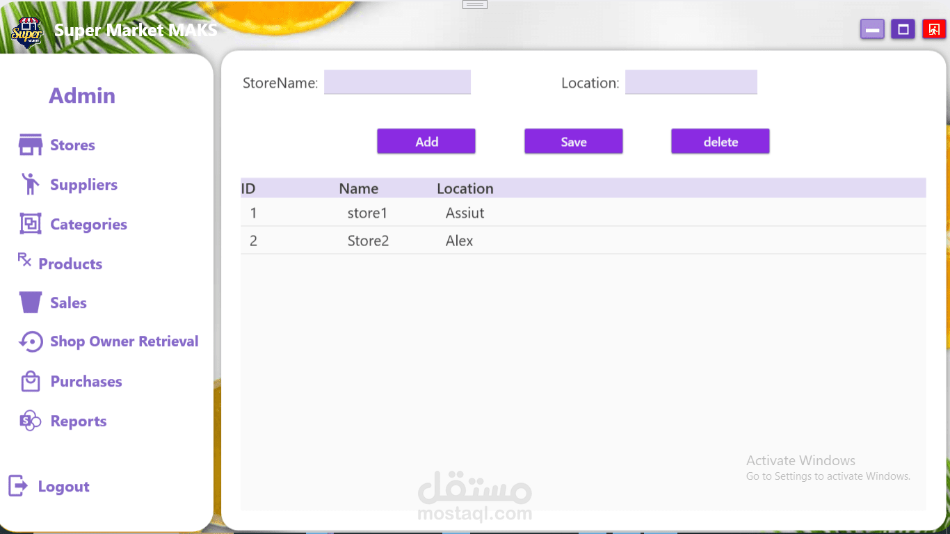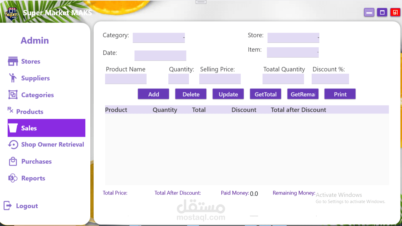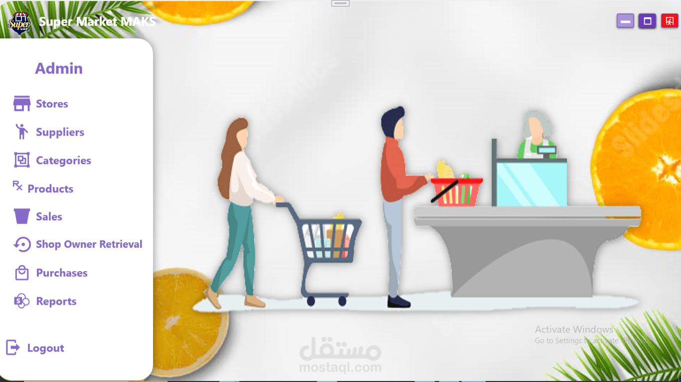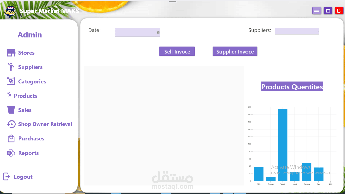 نظام لاداره سوبر ماركت يسمح لك التسجيل كادمن او كاشير لكل منهم صلاحيات مختلفه هناك العديد من المميزات مثل سياسه ترجيع المنتجات او عرض السلع التي اوشكت علي الانتهاء وعرض كل الموردين وعرض الفواتير في الوقت الذي تحدده ويستطيع الادمن اضافه كاشير او حذفه وايضا معرفه تفاصيل مبيعات كل يوم