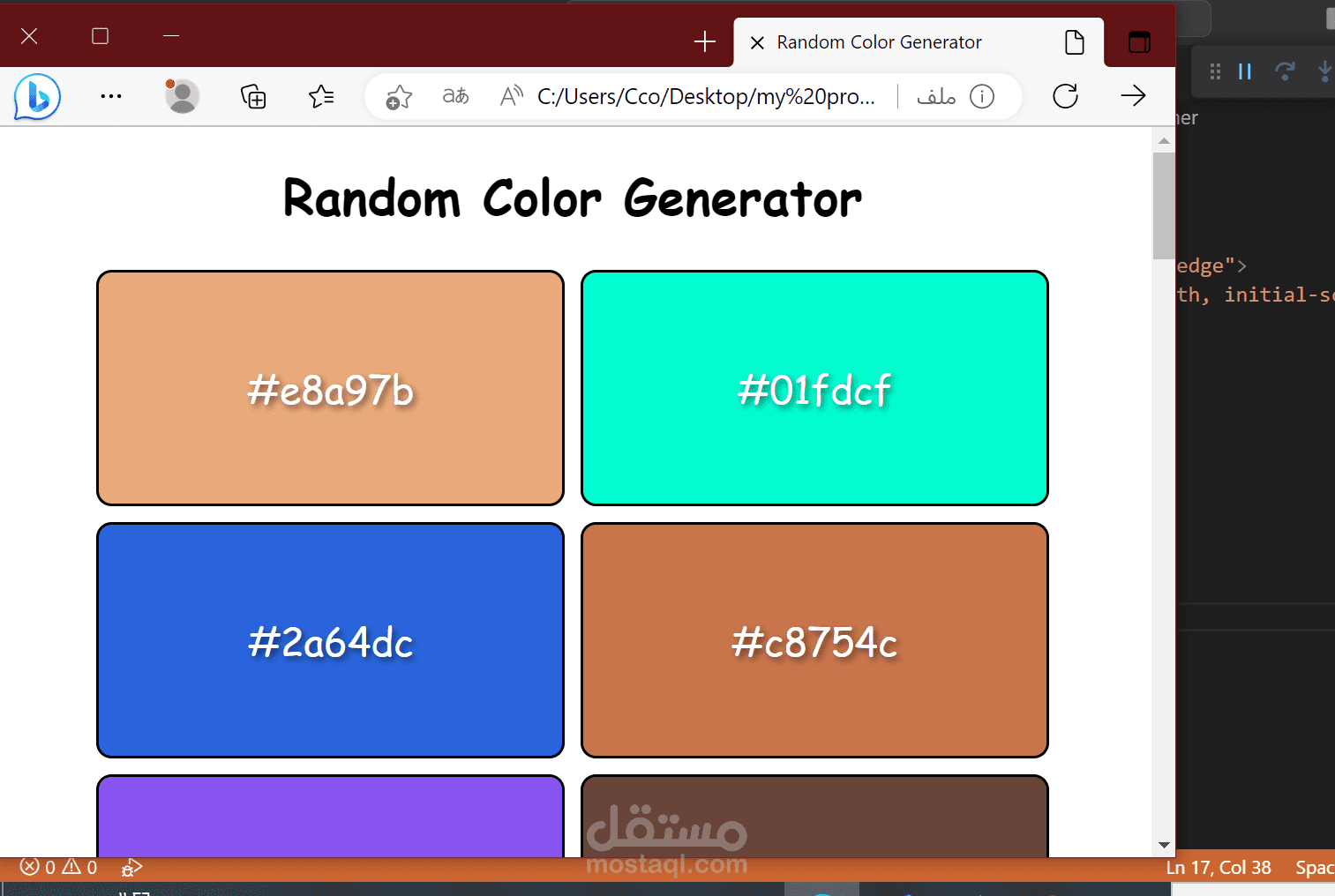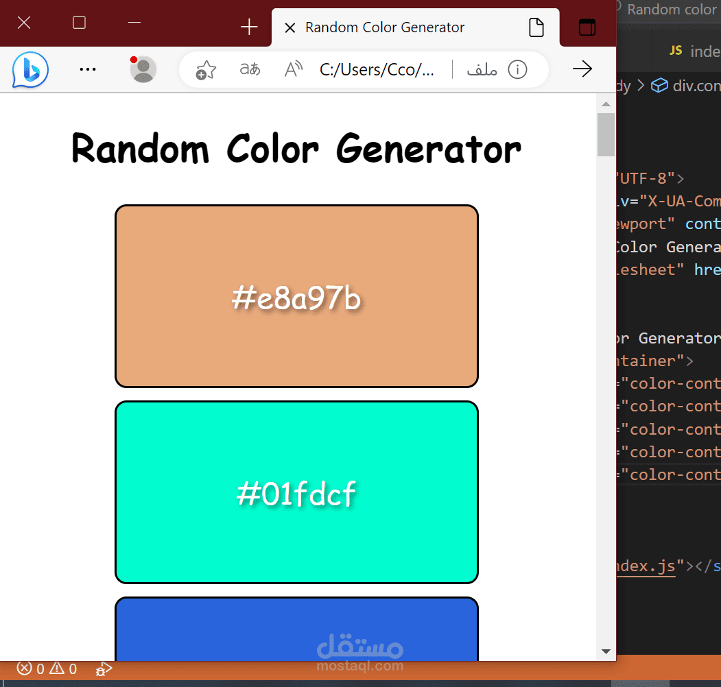 صفحة ويب تقوم بتوليد 30 لون بشكل عشوائي كلما نشطنا الصفحة