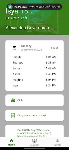 Quran App with Daily Hadith Reminder