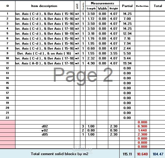 عمل حصر لجميع البنود و الاعمال و اظهار التكلفه النهائيه لكل بند