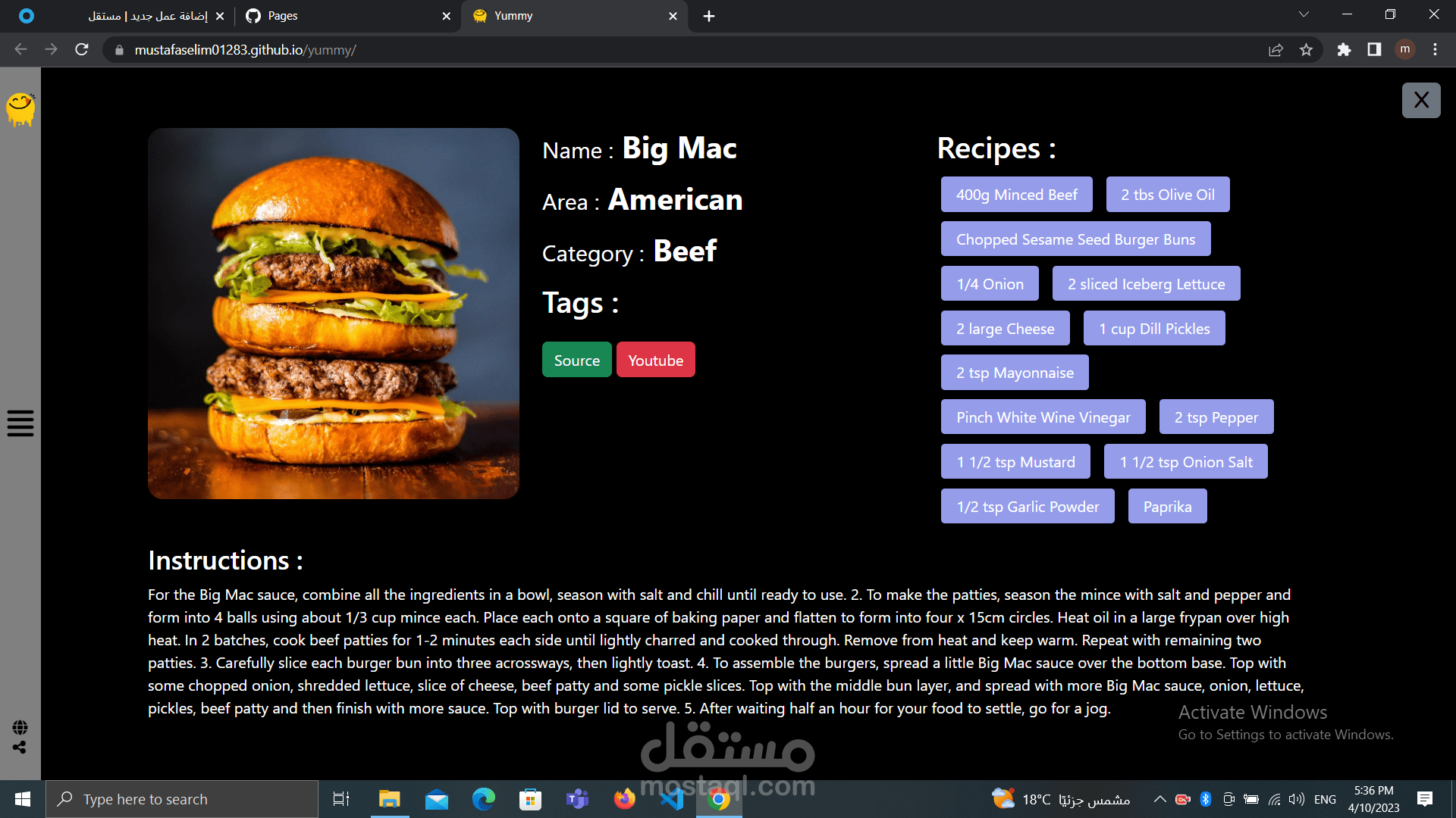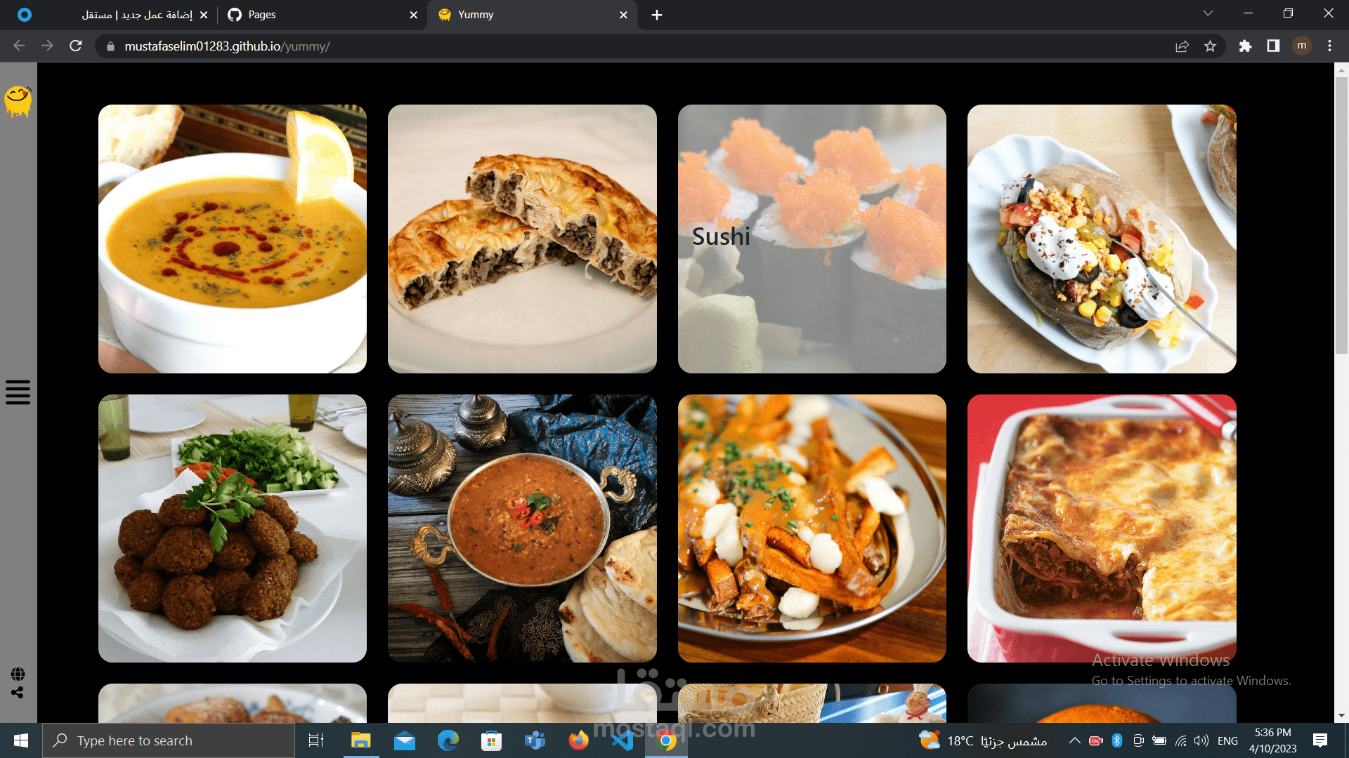 موقع الكتروني لعرض وصفات الطعام