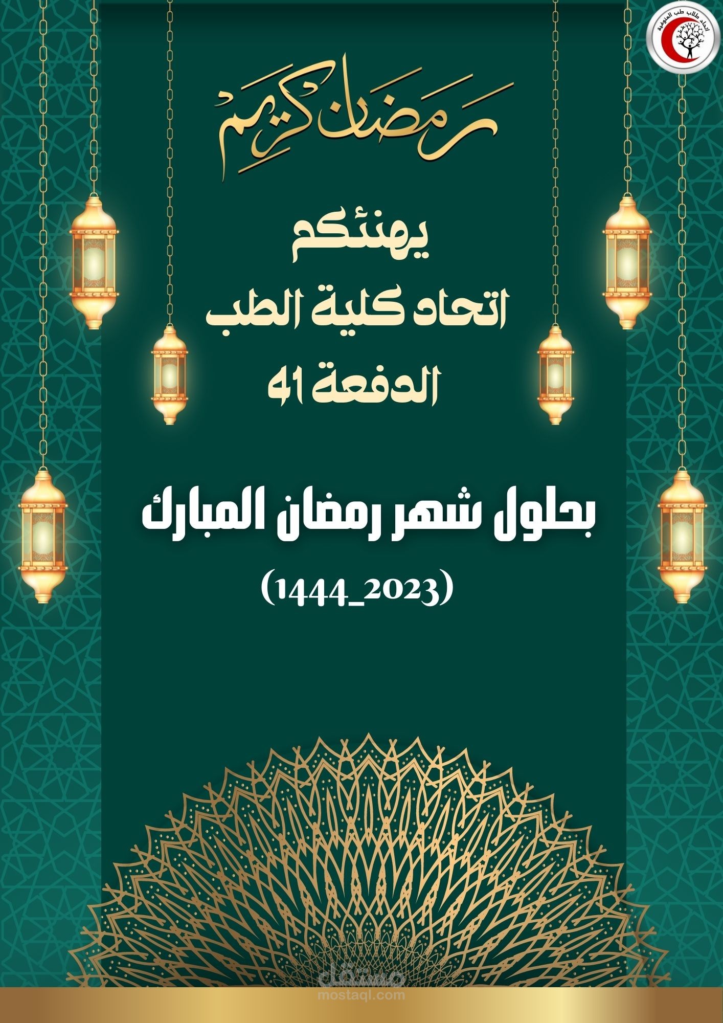 تصميم سوشيال ميديا للتهنئة بشهر رمضان المبارك مستخدما الوان متجانسة و مناسبة للبوست و موضعه مع بعض العناصر و التأثيرات ذات الانطباع الدينى لتجذب الإنتباه و تعطى بوست مفعم بالحيوية و مؤديا للغرض