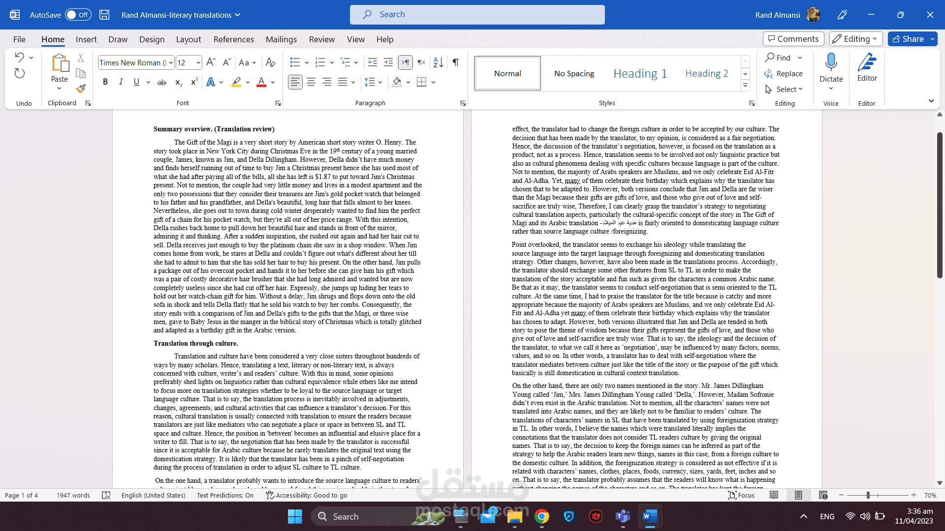 I have reviewed the Arabic translation of The Gift of the Magi, which is reviewing the method of translation, and the process of translation through culture.