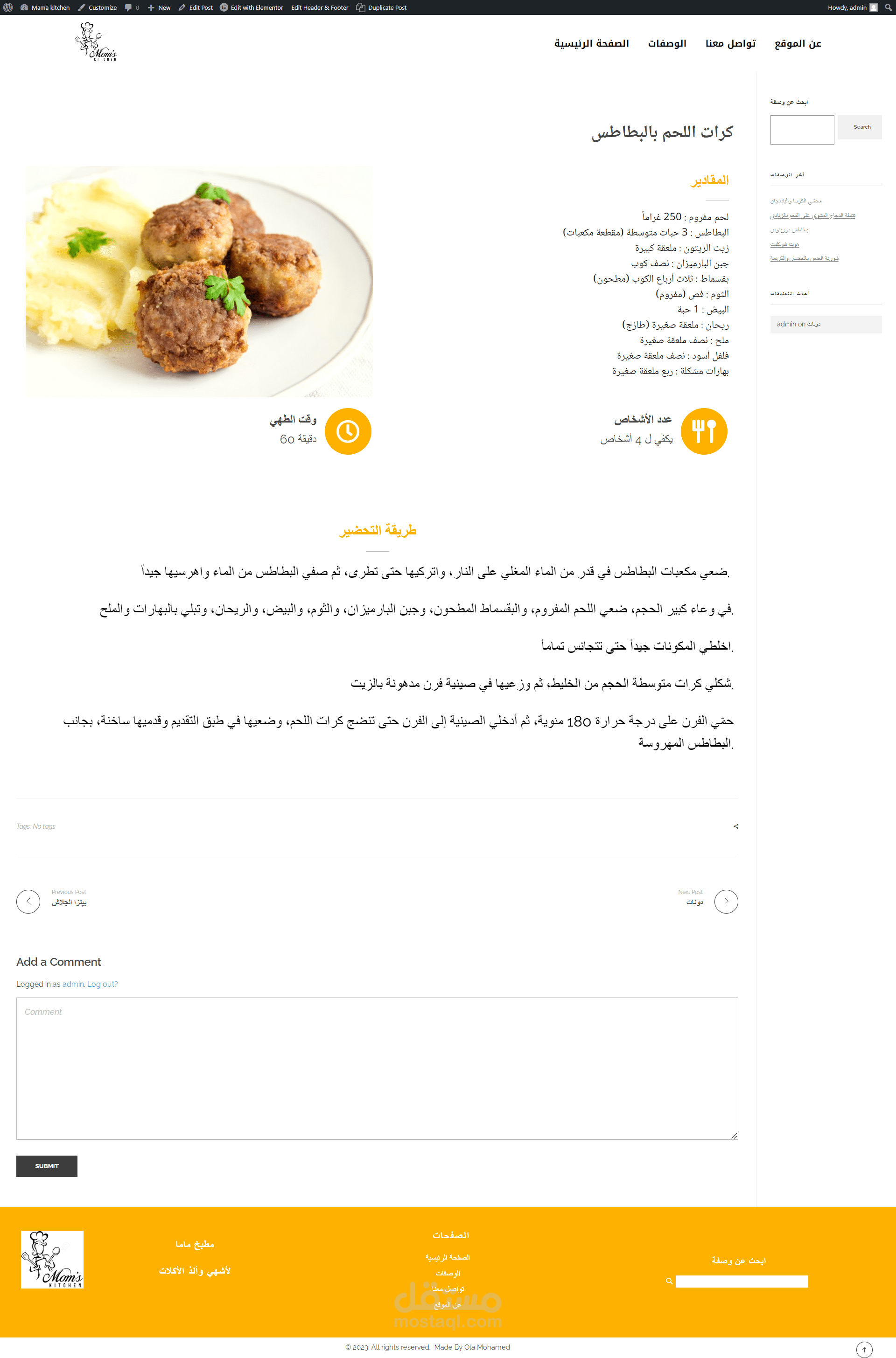 موقع طبخ باستخدام ووردبريس ووردبريس اليمينتور elementor