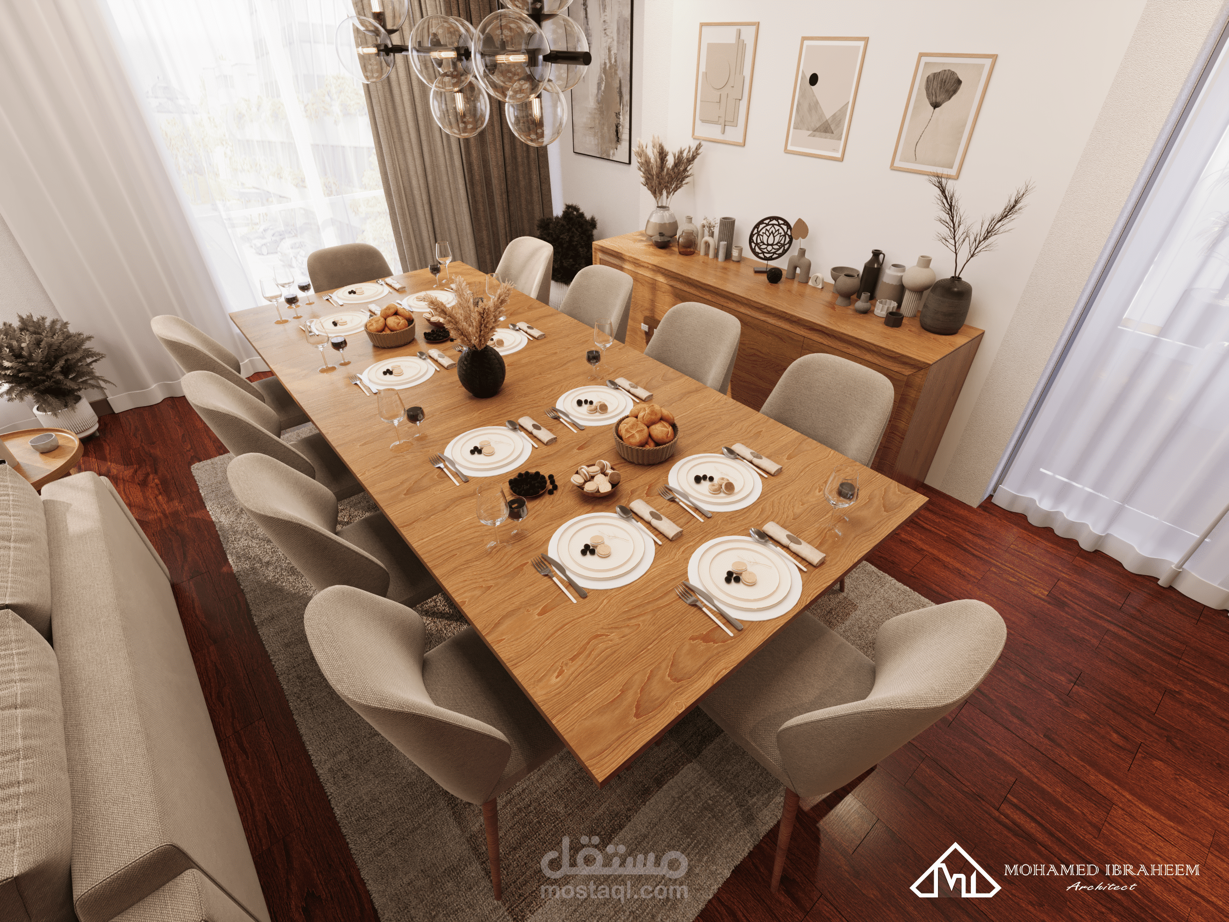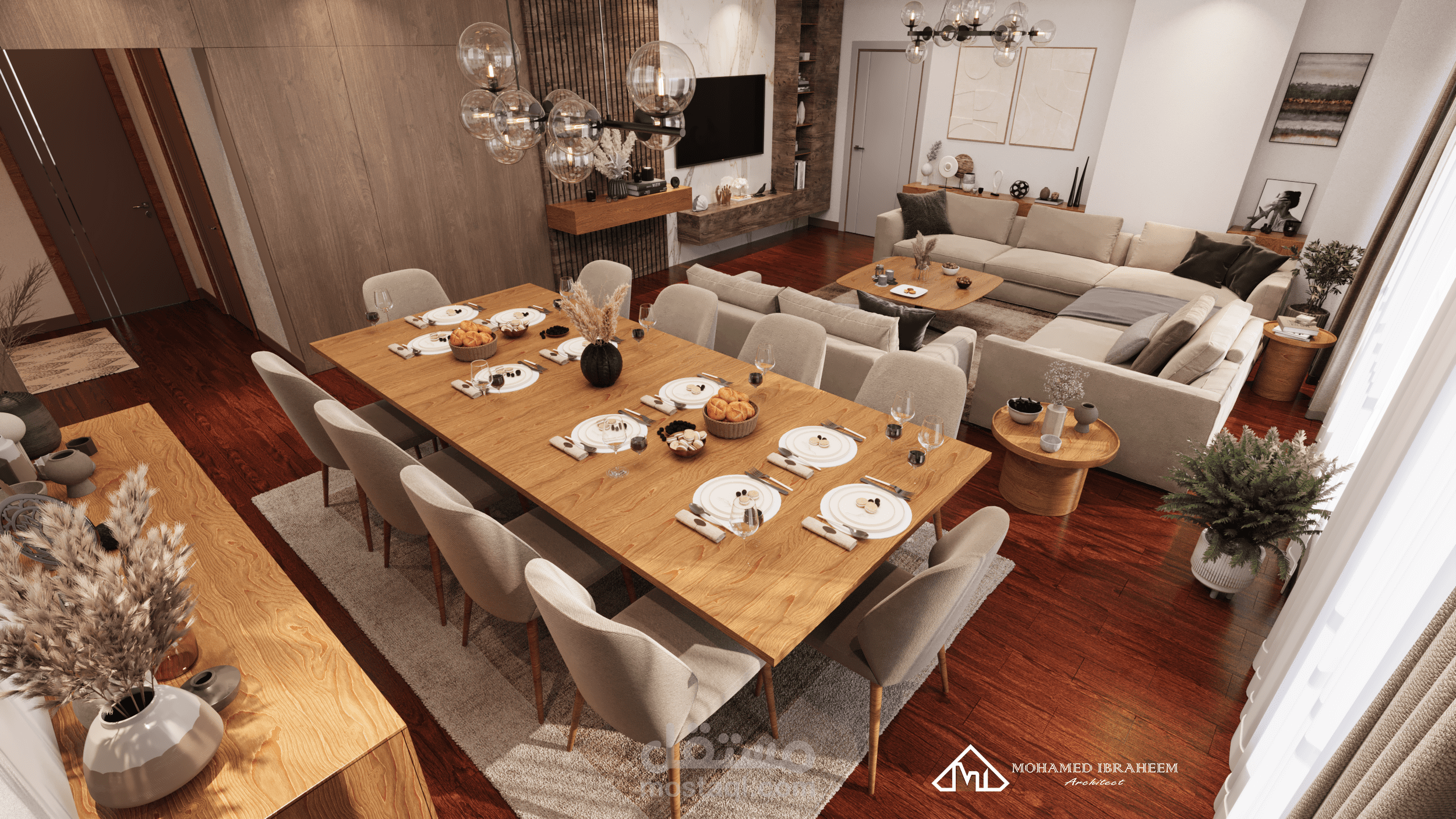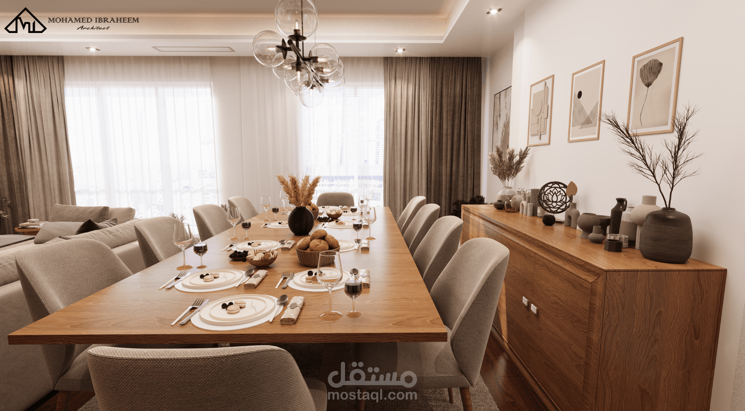 تصميم صالة استقبال وطعام بكمباوند سوديك في القاهرة الجديد علي الطراز الحديث