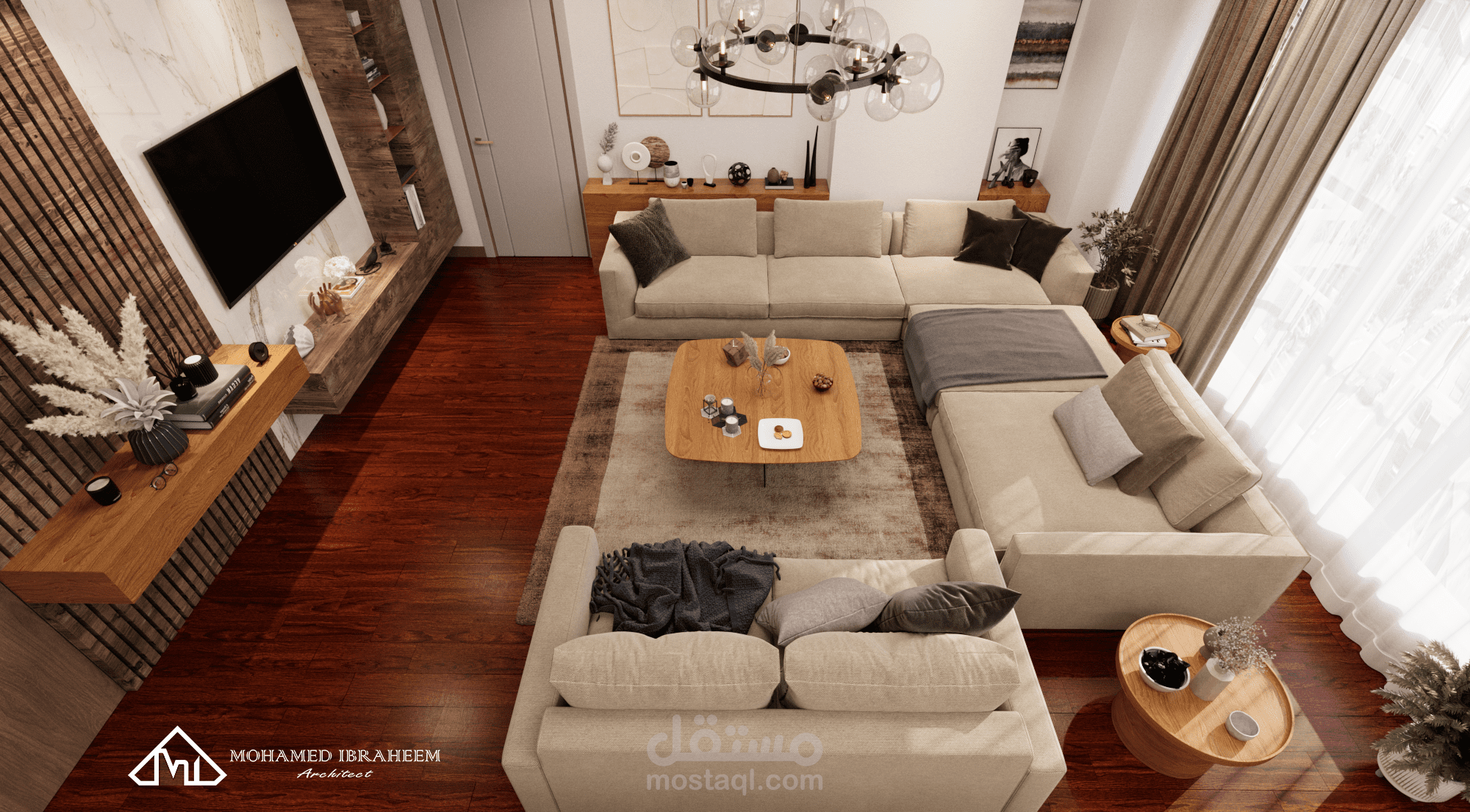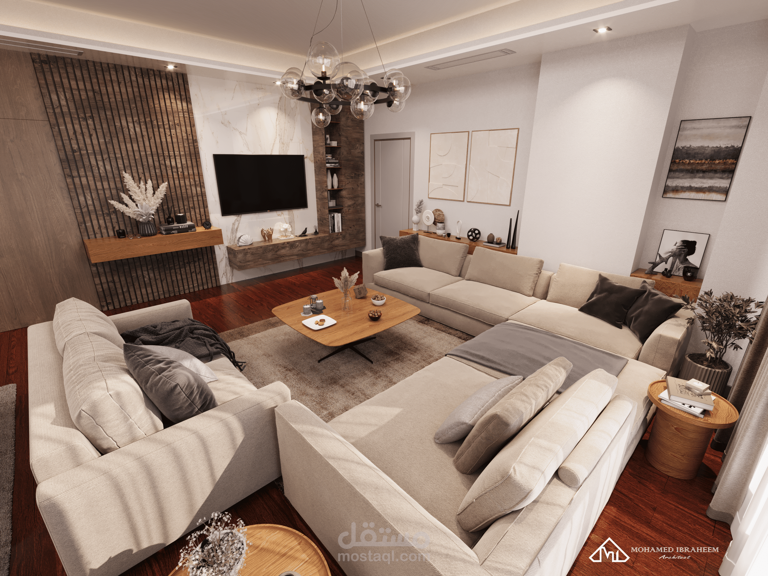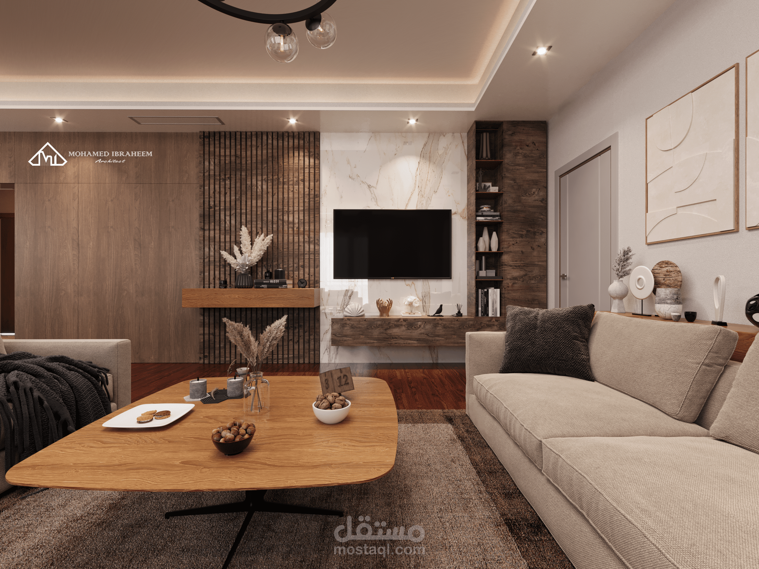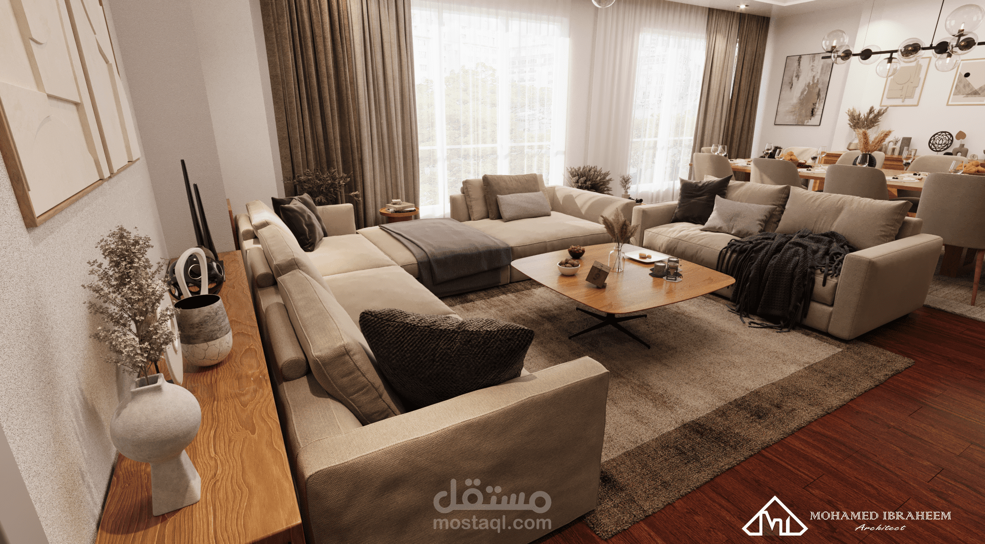 تصميم صالة استقبال وطعام بكمباوند سوديك في القاهرة الجديد علي الطراز الحديث