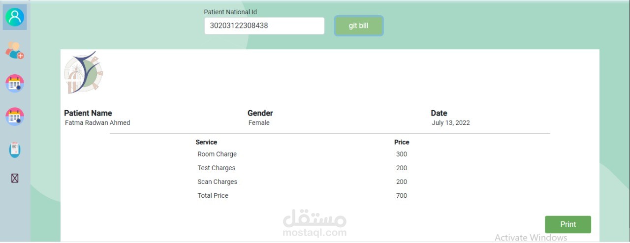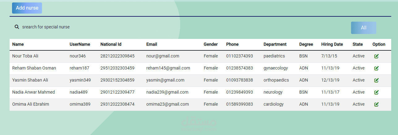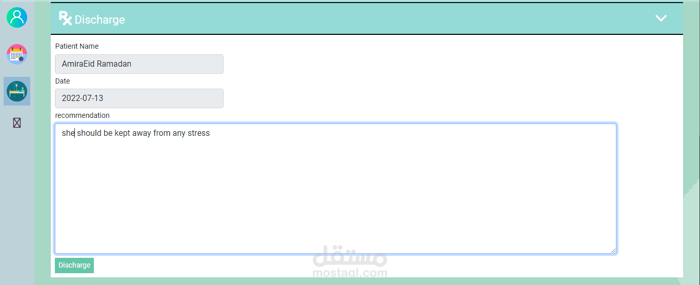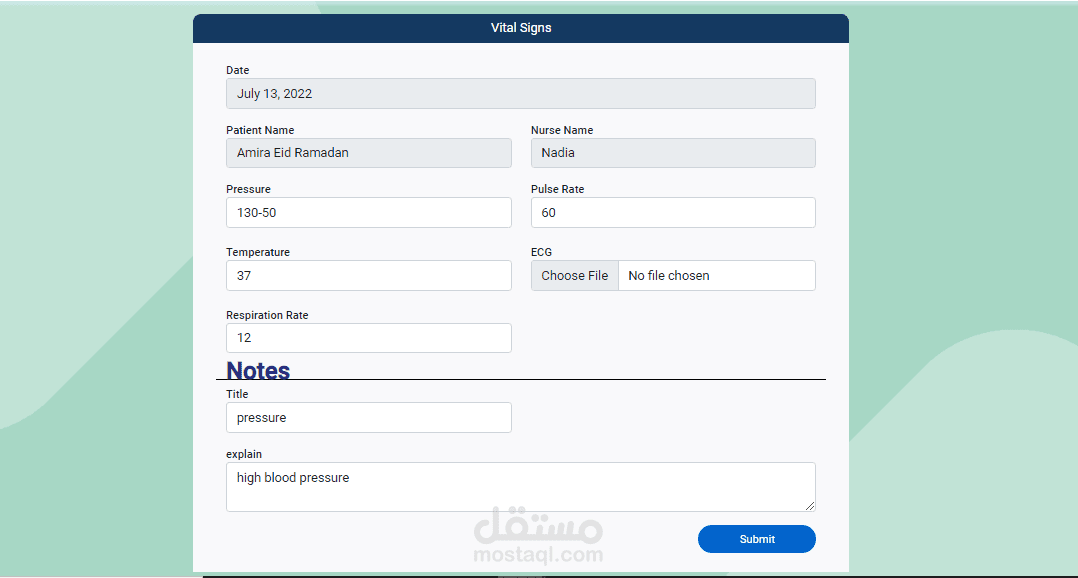يمكن للمرضه تسجيل جميع العمليات الحيويه للمريض الداخلي