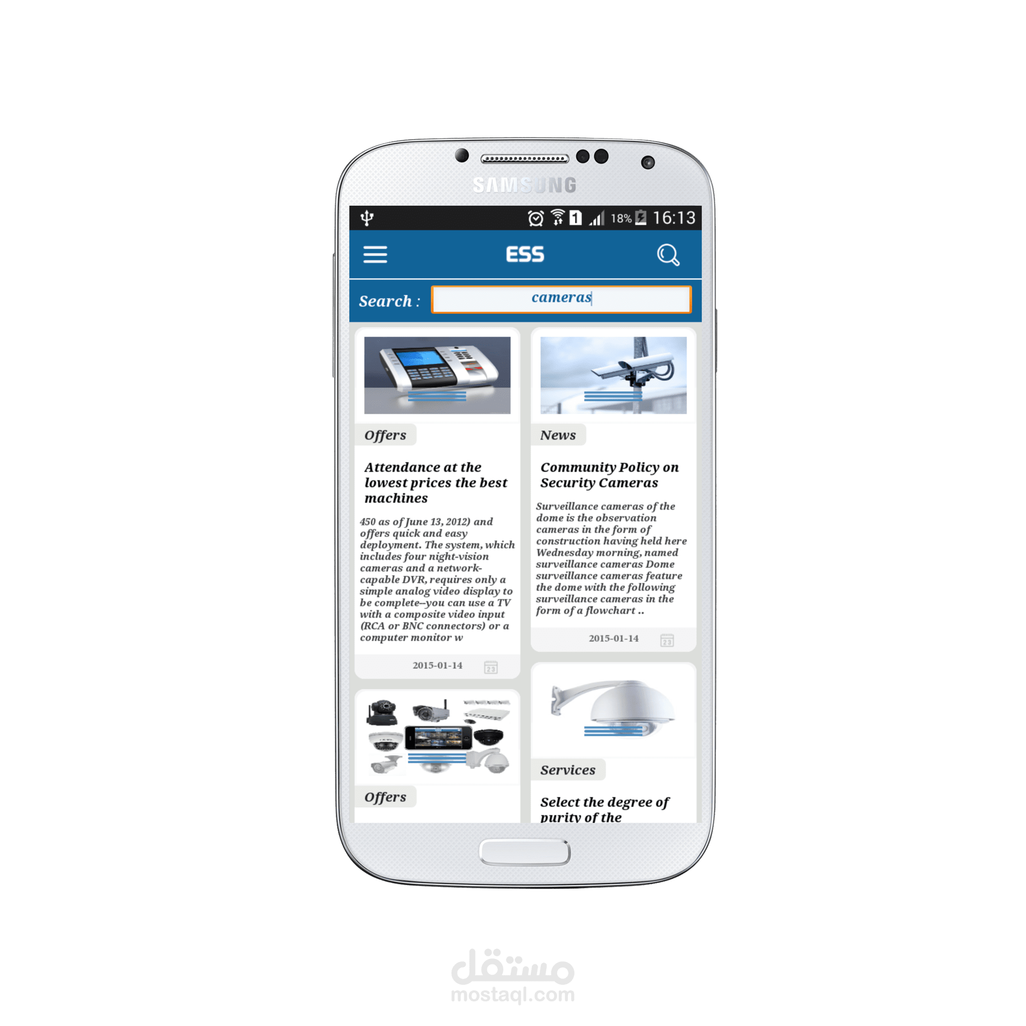 تطبيق خاص بشركة Ess (Elite Smart Systems) التطبيق هوا وصف لكل ما تقدمه الشركة من منتجات وخدمات في مجال الامن والحماية للمؤسسات المختلفه التطبيق يقدم اخبار كل ماهو جديد في مجال الامن والحماية يمكنك التواصل مع الشركة سواء عبر مراسلتها او عن طريق معرفة بيانات الشركة يمكنك ايضا معرفة موقع الشركة بدقة عبر خرائط جوجل التطبيق يقوم بتنبيهك مع كل جديد من منتجات وخدمات الشركة . التطبيق متوفر باللغتين العربية والانجليزية