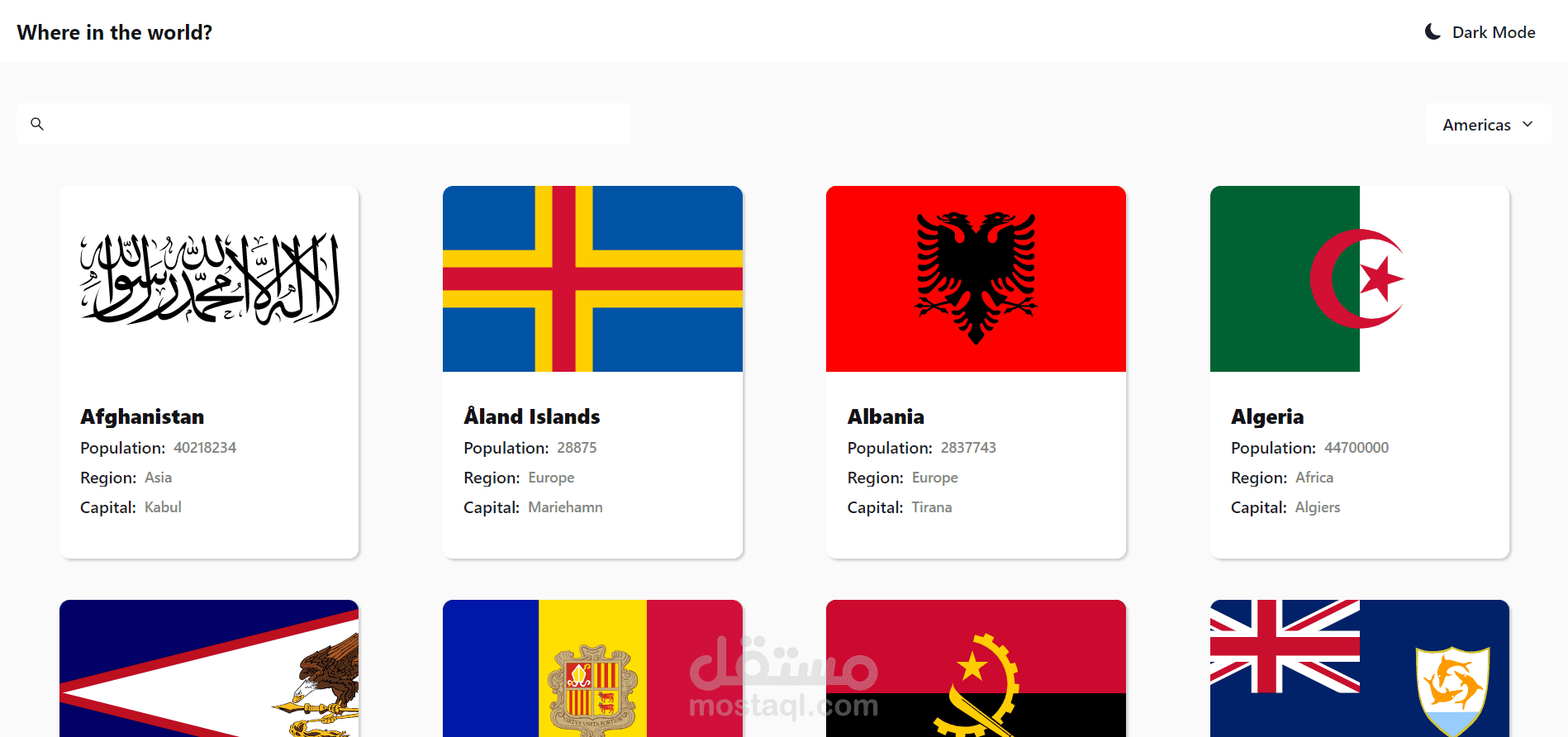 يمكن للمستخدمين البحث عن الدول وفلترتها حسب المنطقة الجغرافية.