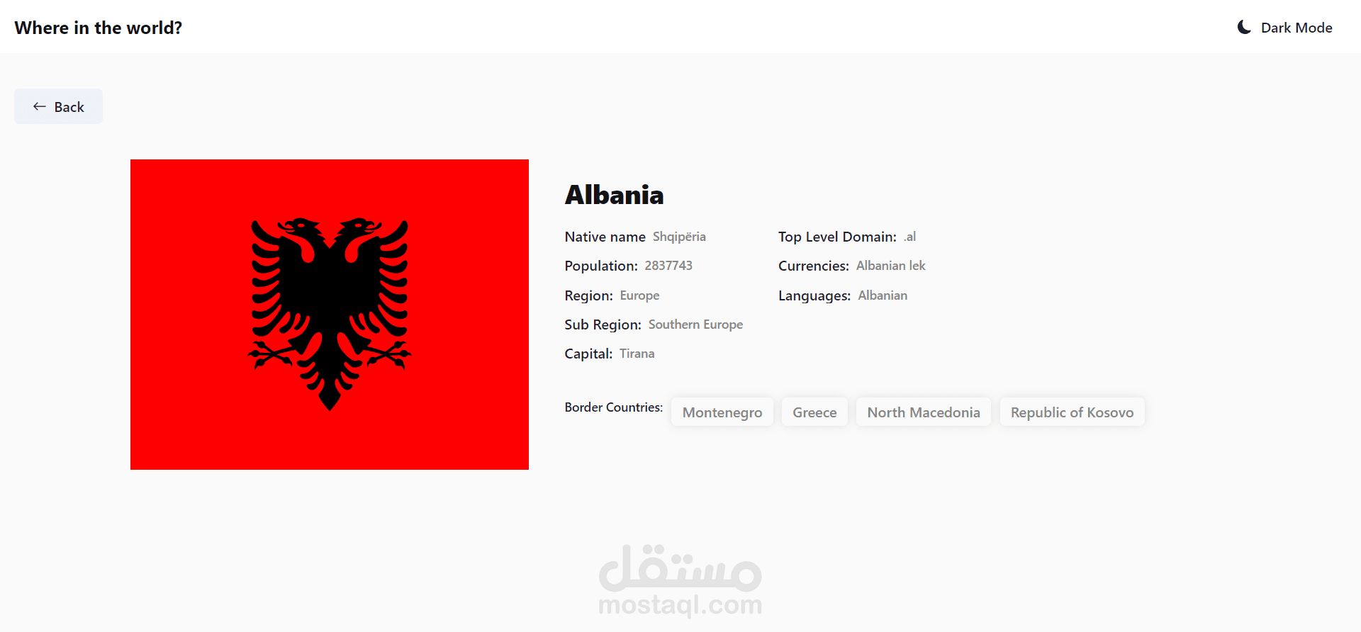هذا المشروع هو تطبيق ويب لعرض الدول والتفاصيل المتعلقة بها.