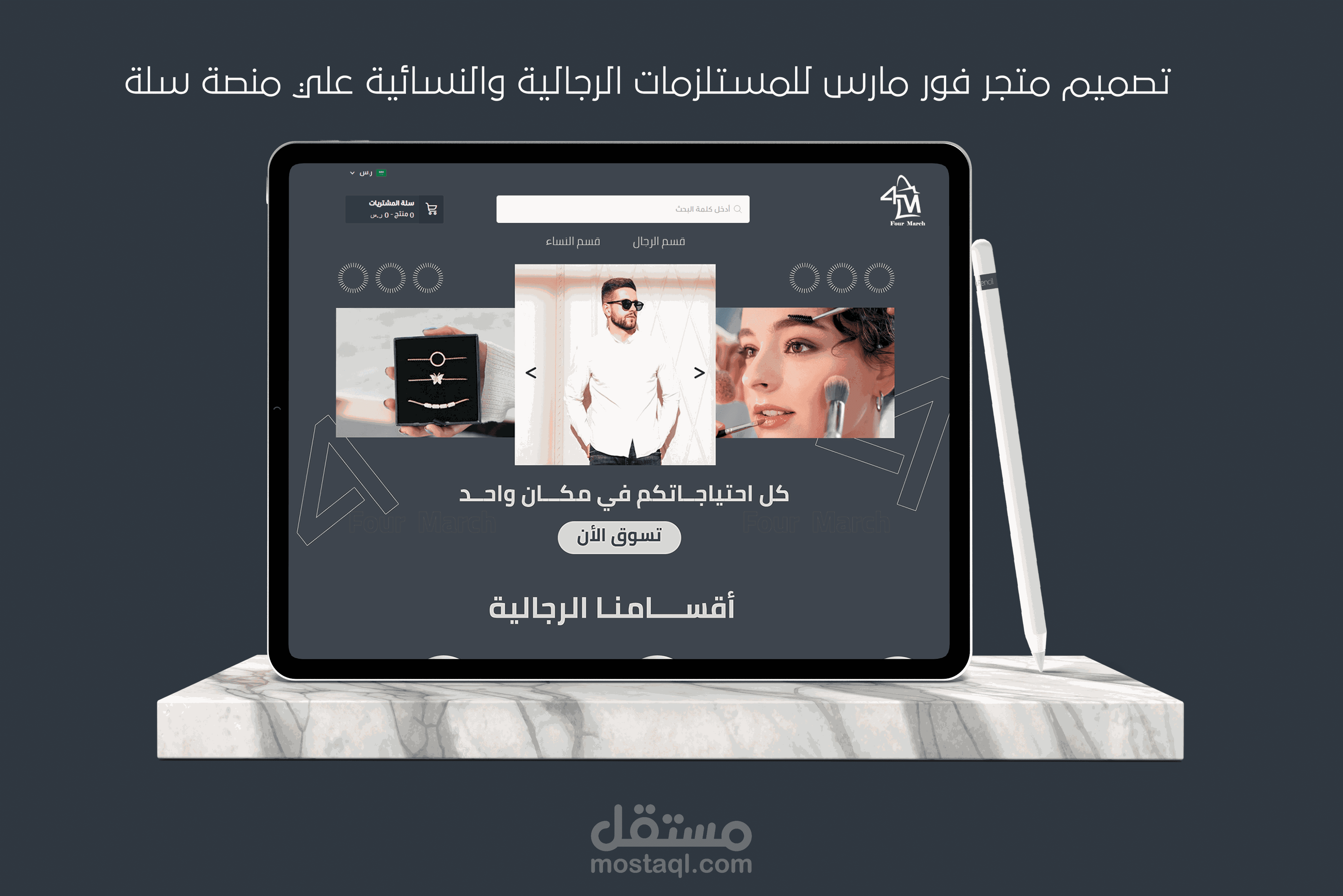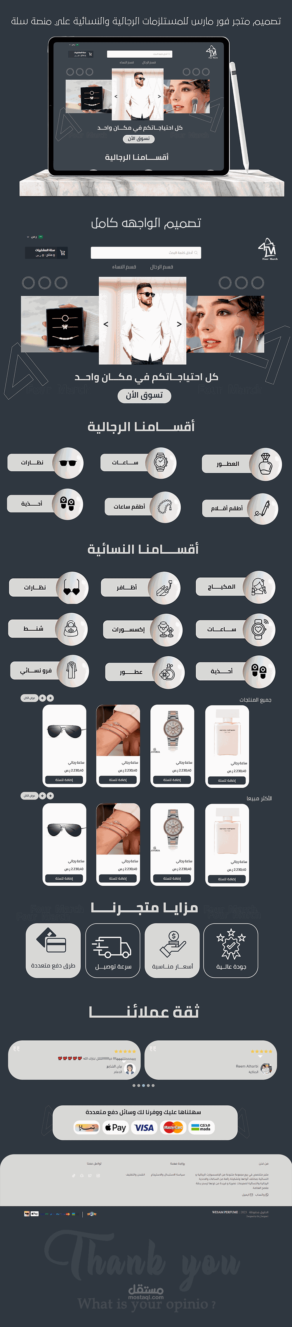 تم تصميم واجهة متجر فور مارس وهو متخصص سعودي متخصص في بيع مجموعة متنوعة من الإكسسوارت الرجالية و النسائية بمختلف أنواعها وتشكيلة رائعة من الساعات والاحذية الرجالية والنسائية تصميمات عصرية و فريدة تم تصميم الواجهة بطريقة احترافية جذابة