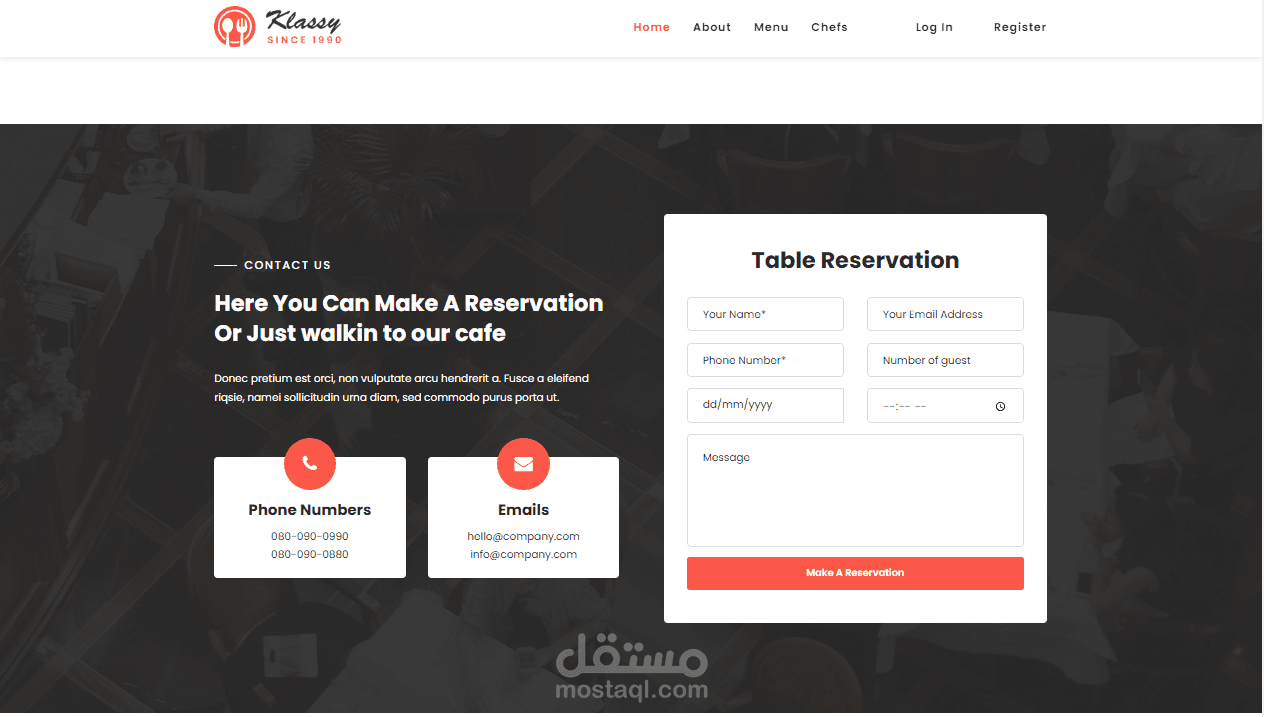 يتميز المشروع الذي تم تطويره باستخدام إطار العمل Laravel بأنه موقع ويب لمطعم يتم تقسيمه إلى جزئين رئيسيين: لوحة القيادة (Dashboard) للمدير والموقع الرئيسي للمستخدم.