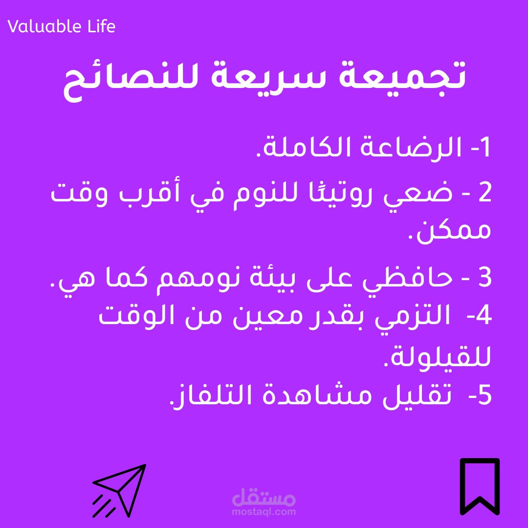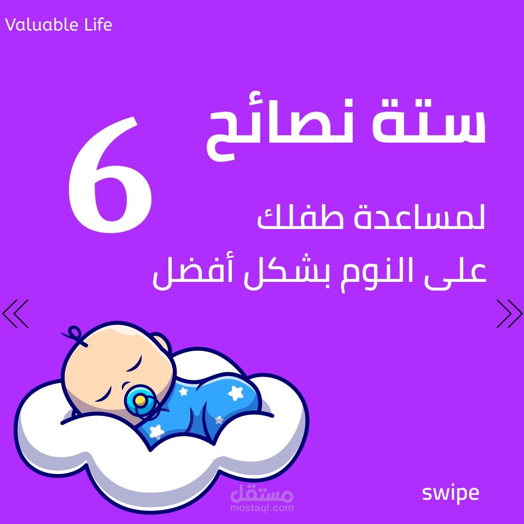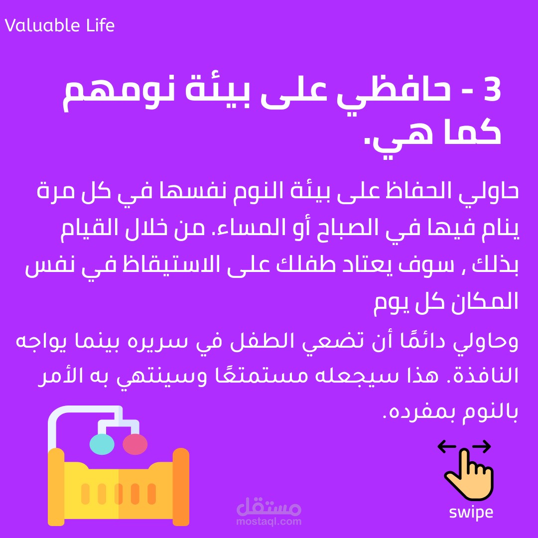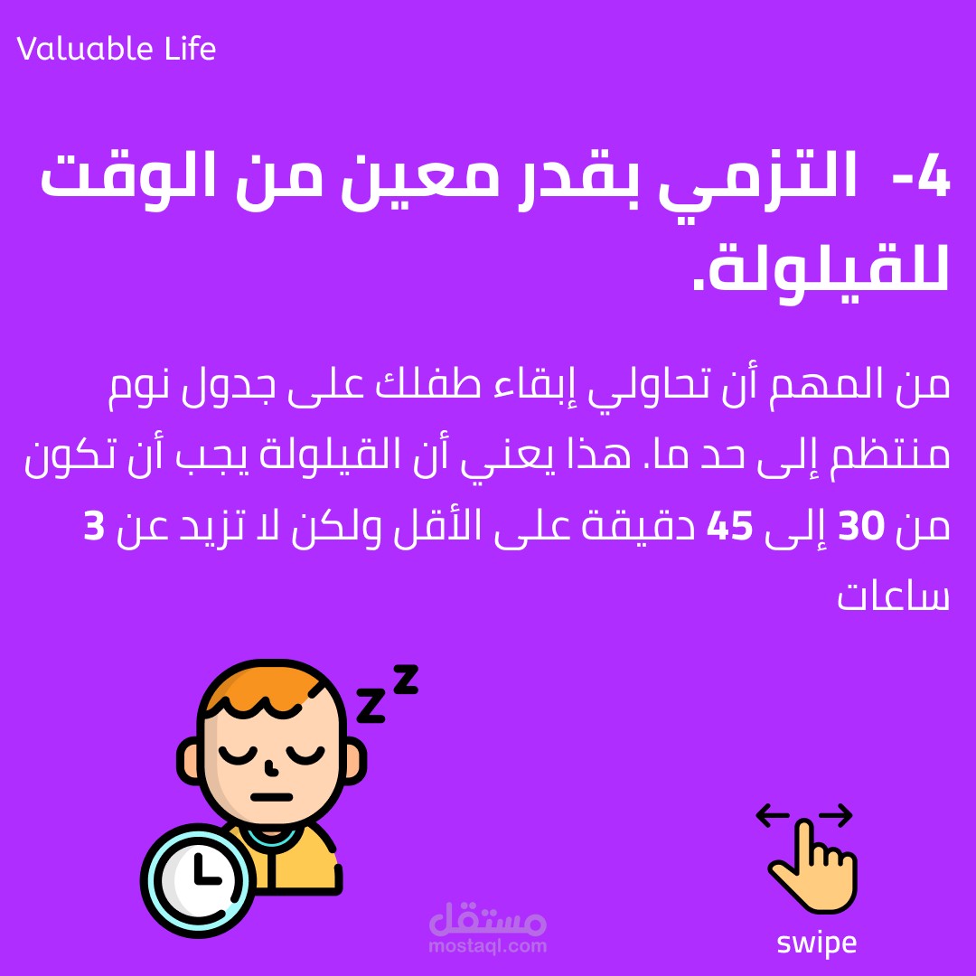 بوست على الانستاجرام للتوعية عن النوم السليم للأطفال واهميته والاحتياطات اللتي ينصح باتخاذها.