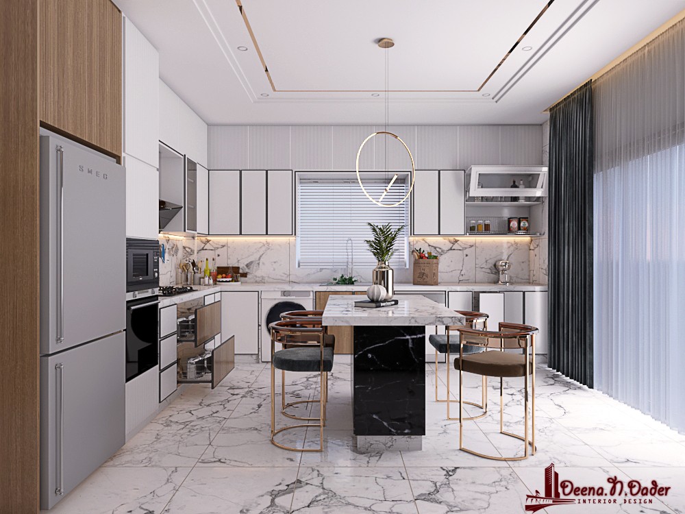 تصميم مطبخ عصري مميز ضمن مشروع تصميم فيلا لأحد العملاء المميزين.