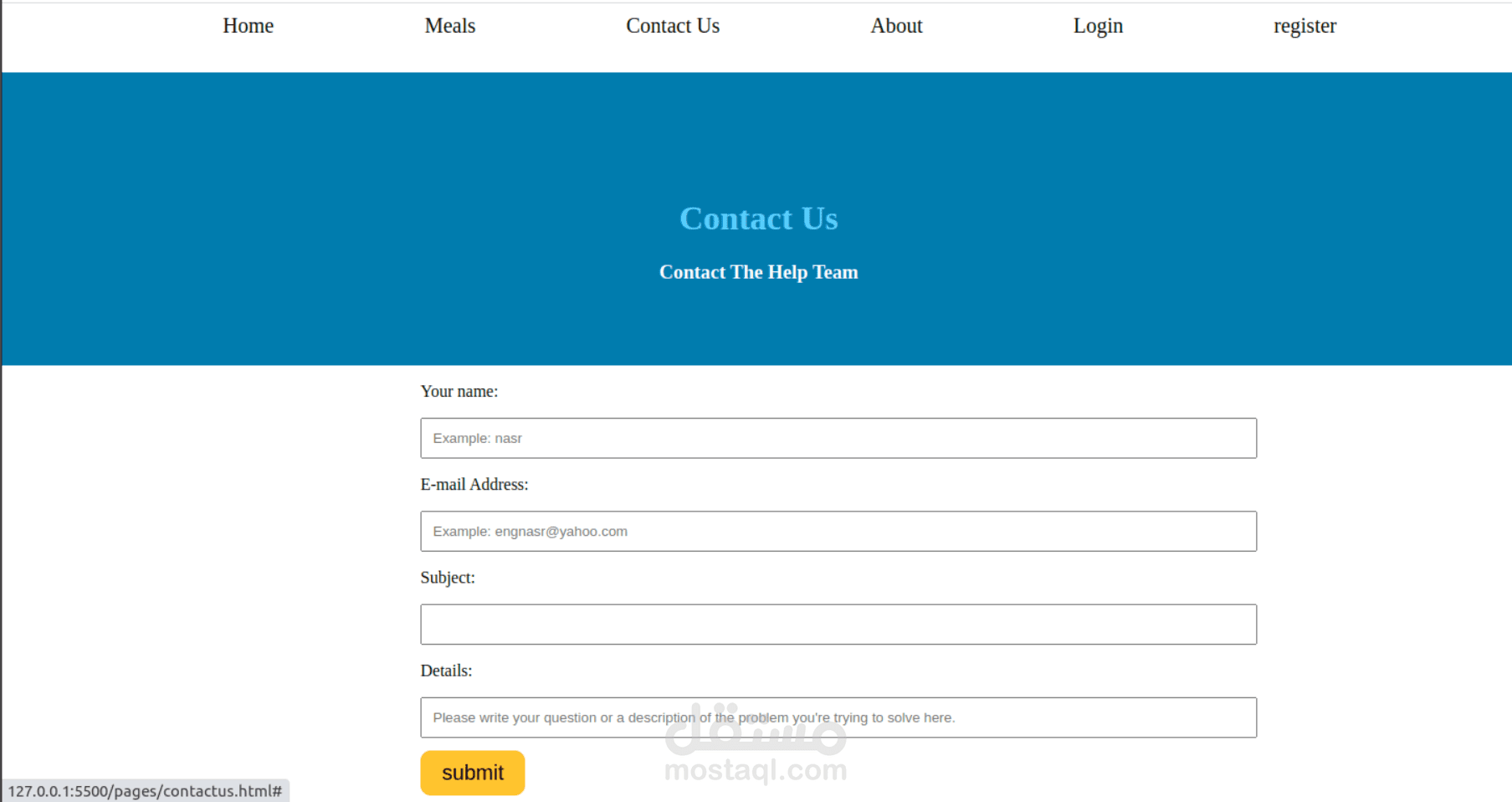 3-صفحة للتواصل مع المطعم