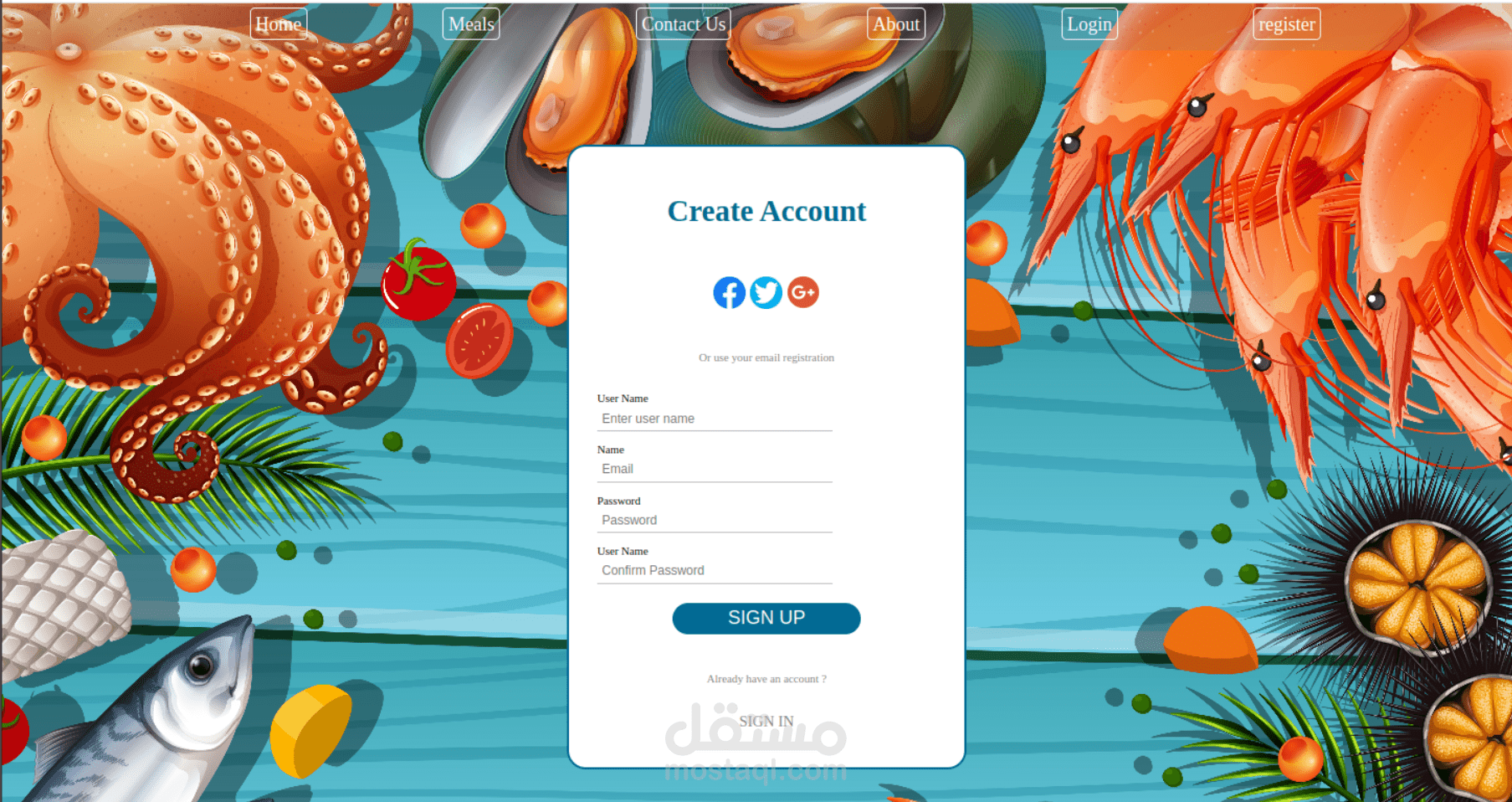 5-التسجيل لأول مرة على موقع المطعم