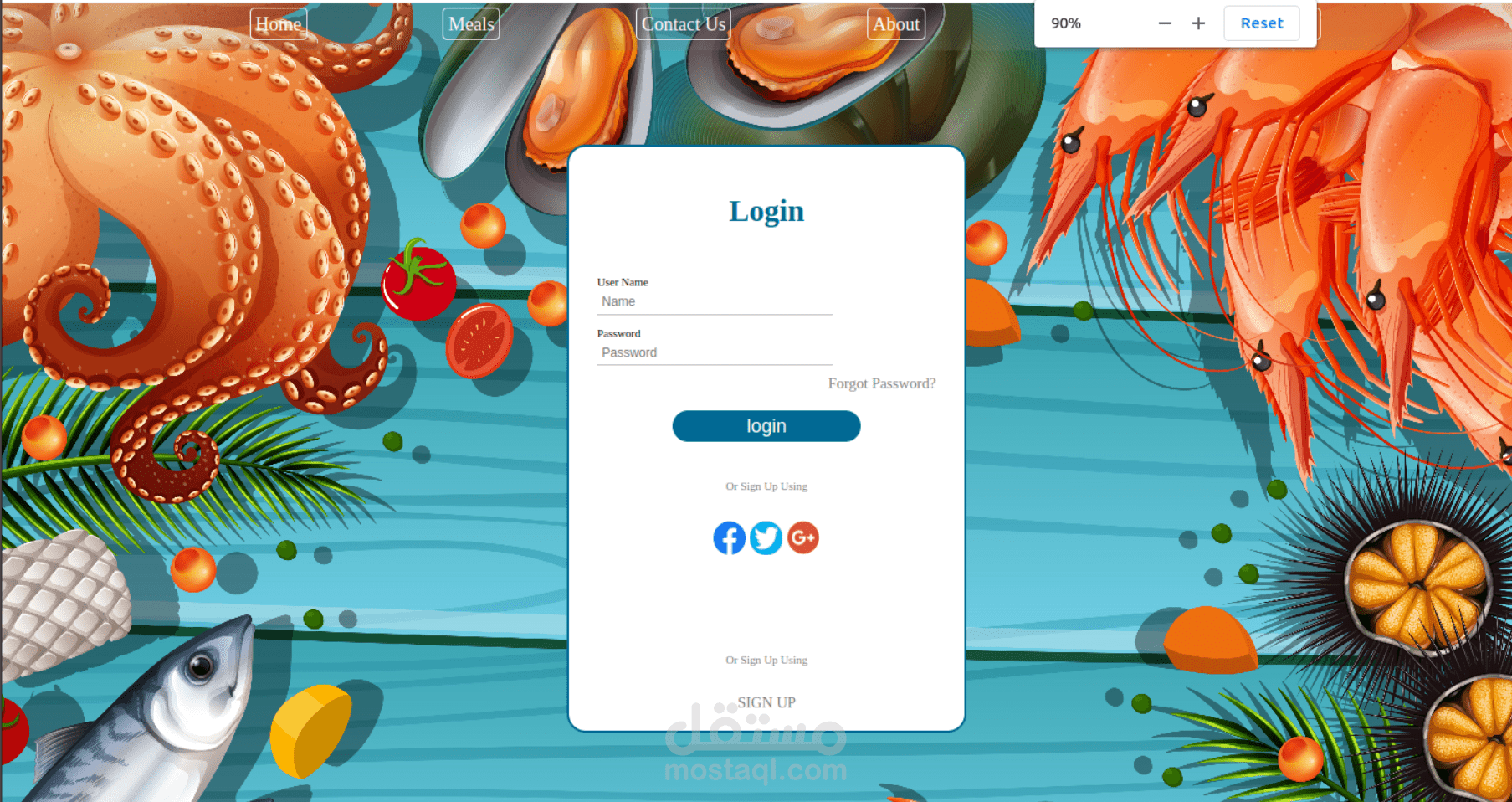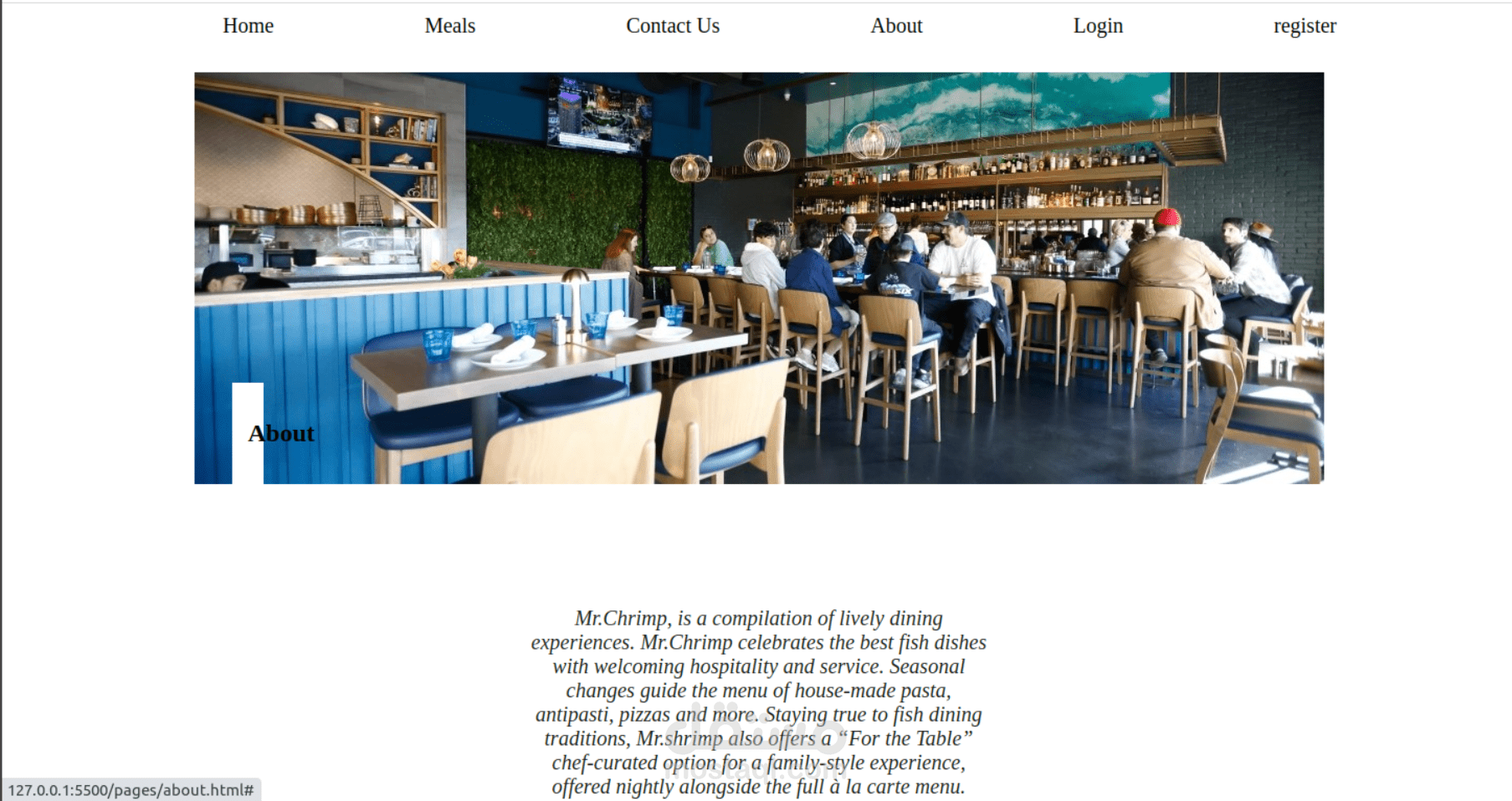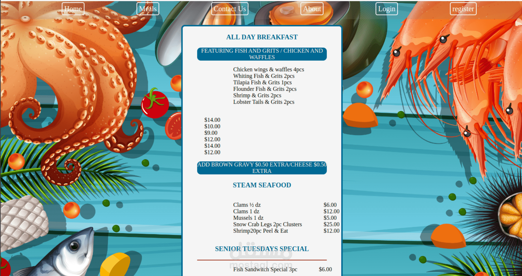 موقع لمطعم اسماك يحتوى على :