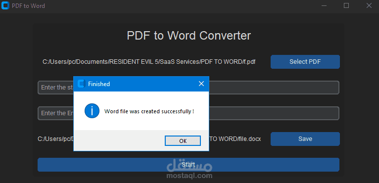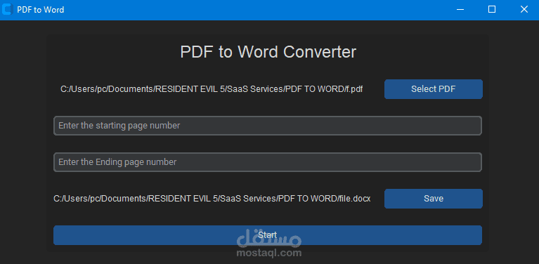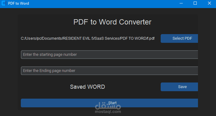 هذا برنامج يقوم باستخراج النصوص من ملف pdf ويقوم بتفريغها في ملف word