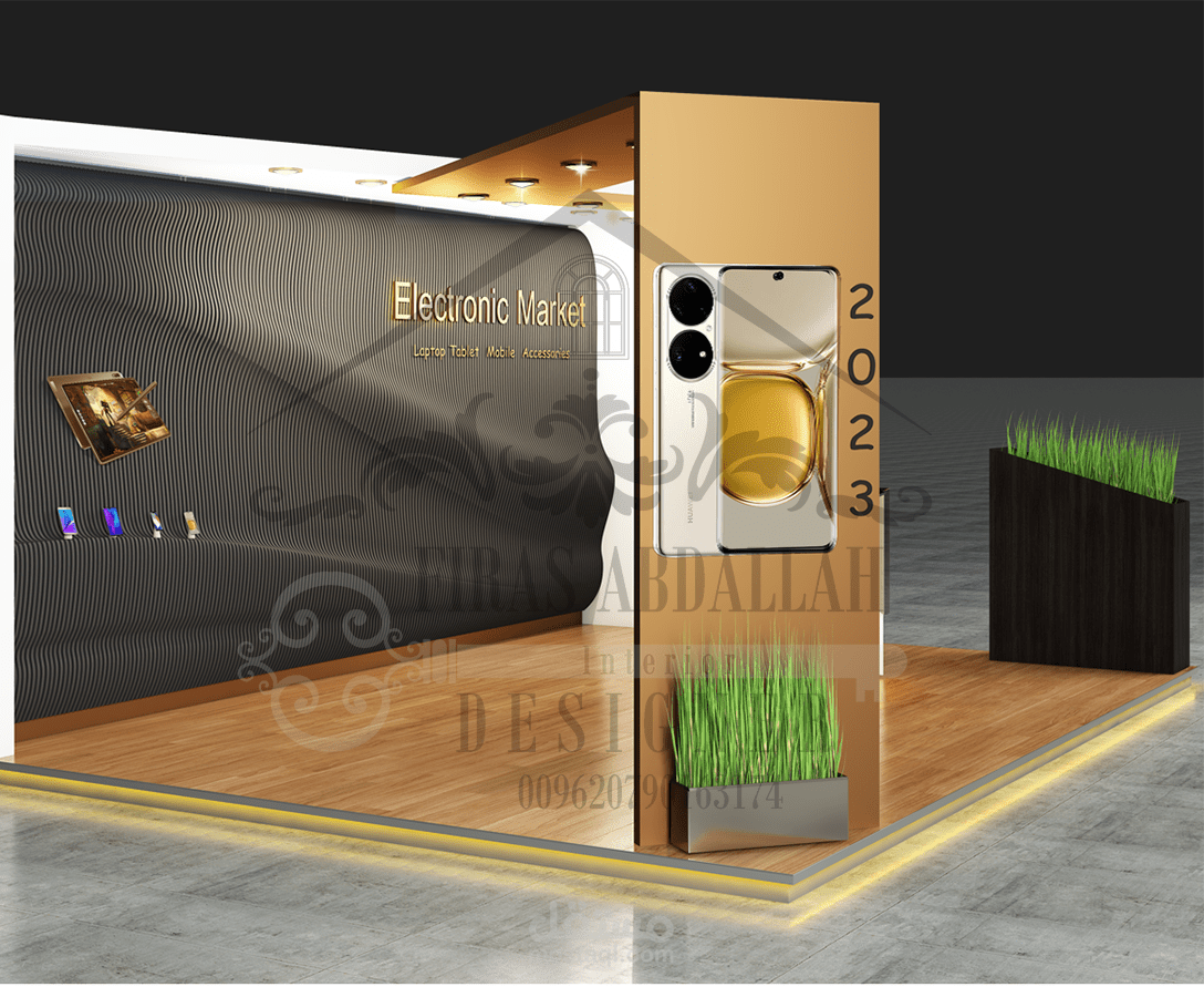 تصميم بووث لعرض الموبايلات ذات جداريات PARAMETRIC