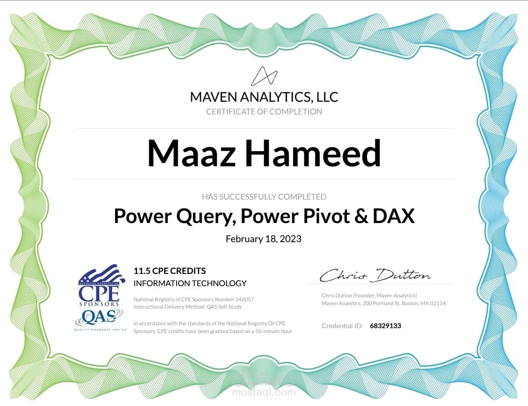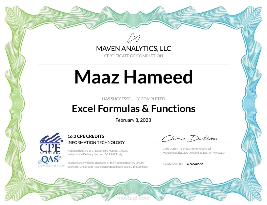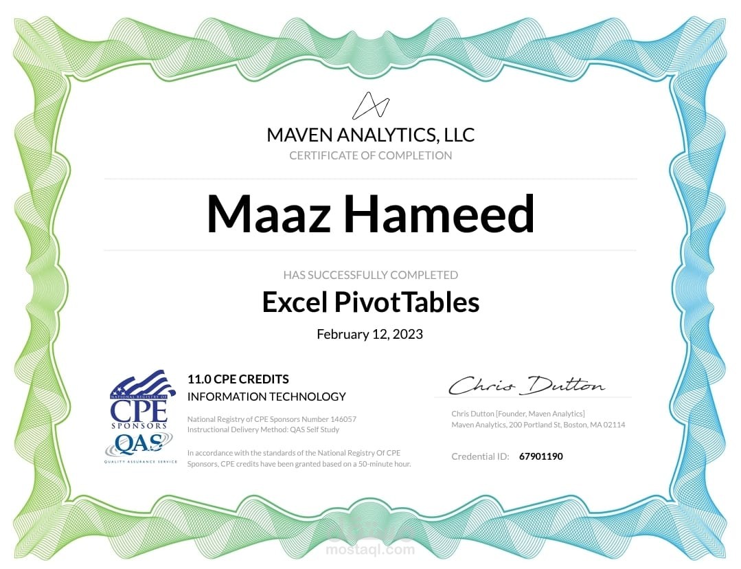 شهادات اعتمادية برنامج الاكسل Excel من مؤسسة CPE الامريكية