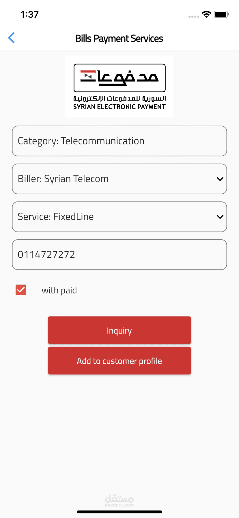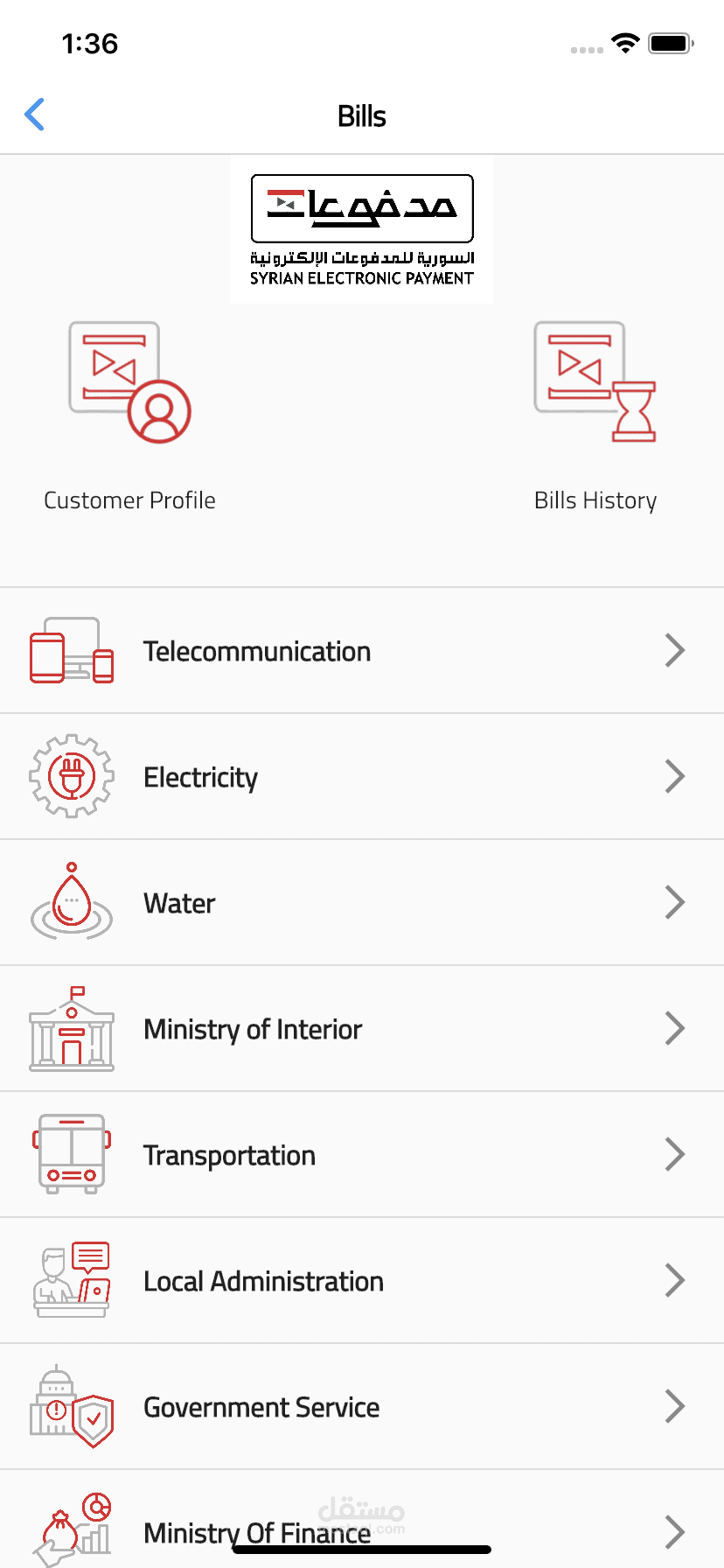 8- خدمة دفع الفواتير Bills تحتوي هذه الخدمة على ميزة مهمة و التي يمكنك من خلالها دفع كل الفواتير الخاصة بك أو التي تهمك من جميع القطاعات سواء مياه أو كهرباء أو دفع معاملات حكومية ...... الخ.