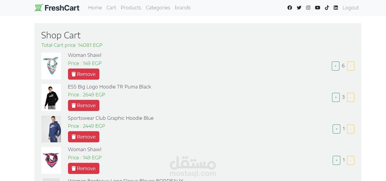 -تم استخدام api لعرض المنتجات و لمعرفة عدد القطع المتوفره