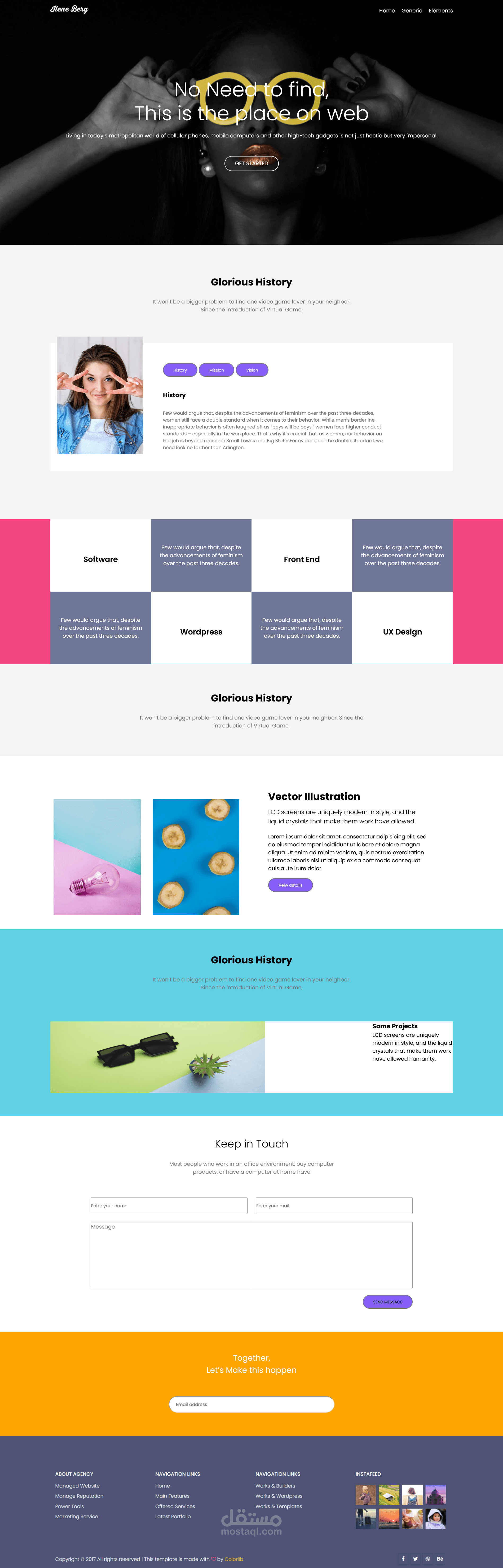 صفحة الويب التي صممتها تحتوي على مجموعة متنوعة من المحتويات المختلفة، مما يتيح للمستخدمين الوصول إلى مجموعة متنوعة من المعلومات. تم إضافة صور وأعمال مختلفة، وتم تصميم الصفحة باستخدام HTML و CSS لجعلها سهلة الاستخدام وجذابة.