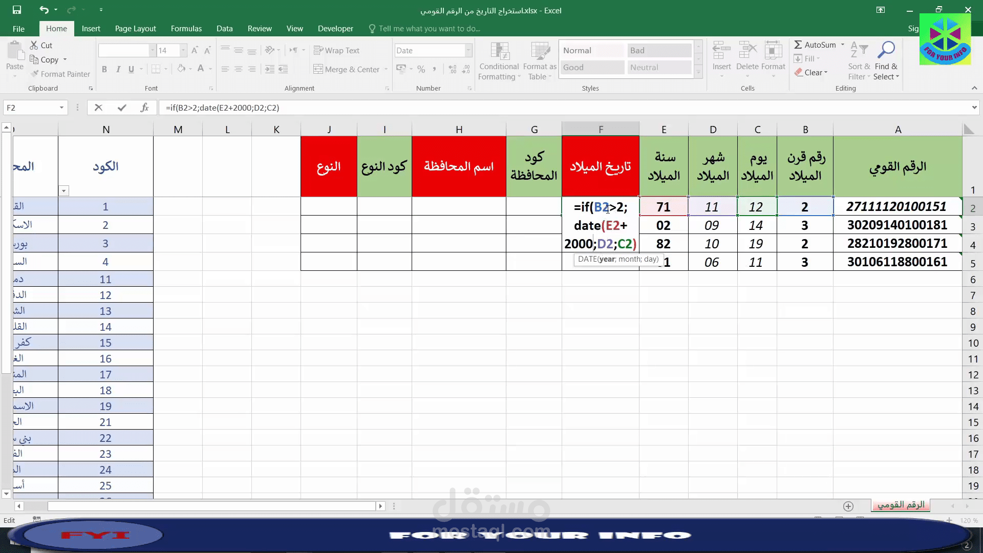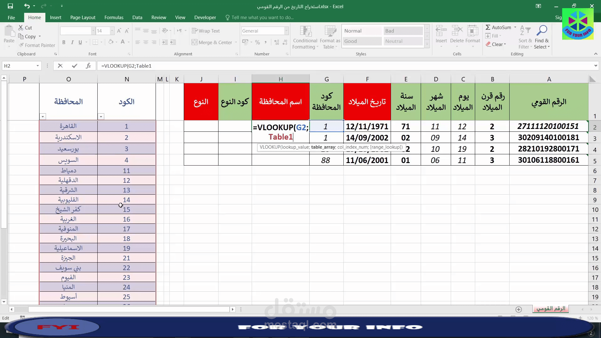 سوف نتعرف على كيفية استخراج تاريخ ومحافظة الميلاد والنوع من الرقم القومي بطريقة مختلفة واحترافية بشكل مبسط