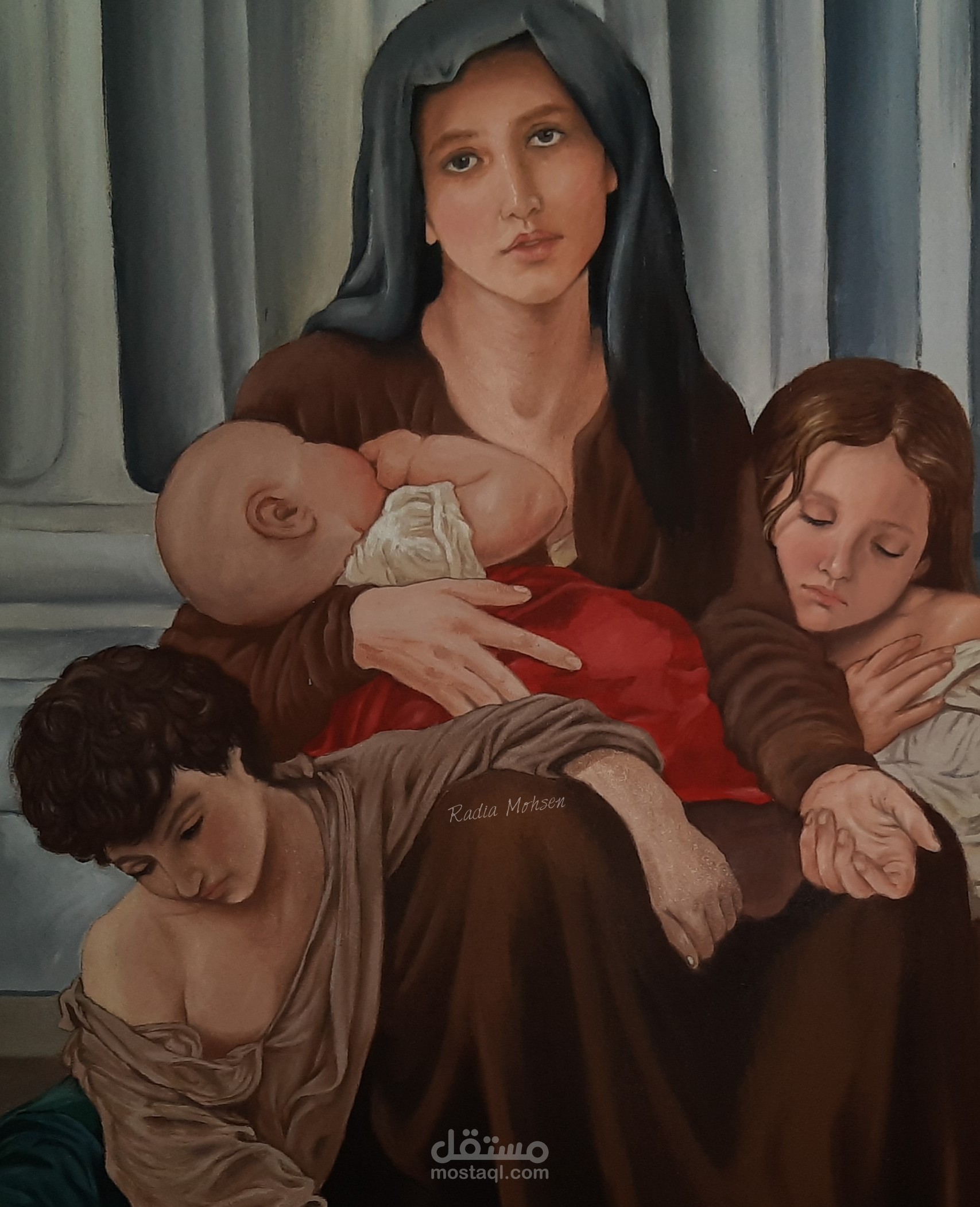 لوحة زيتية بعنوان الأسرة الفقيرة. العمل الأصلي للفنان الفرنسي ويليام أدولف بوغيرو..