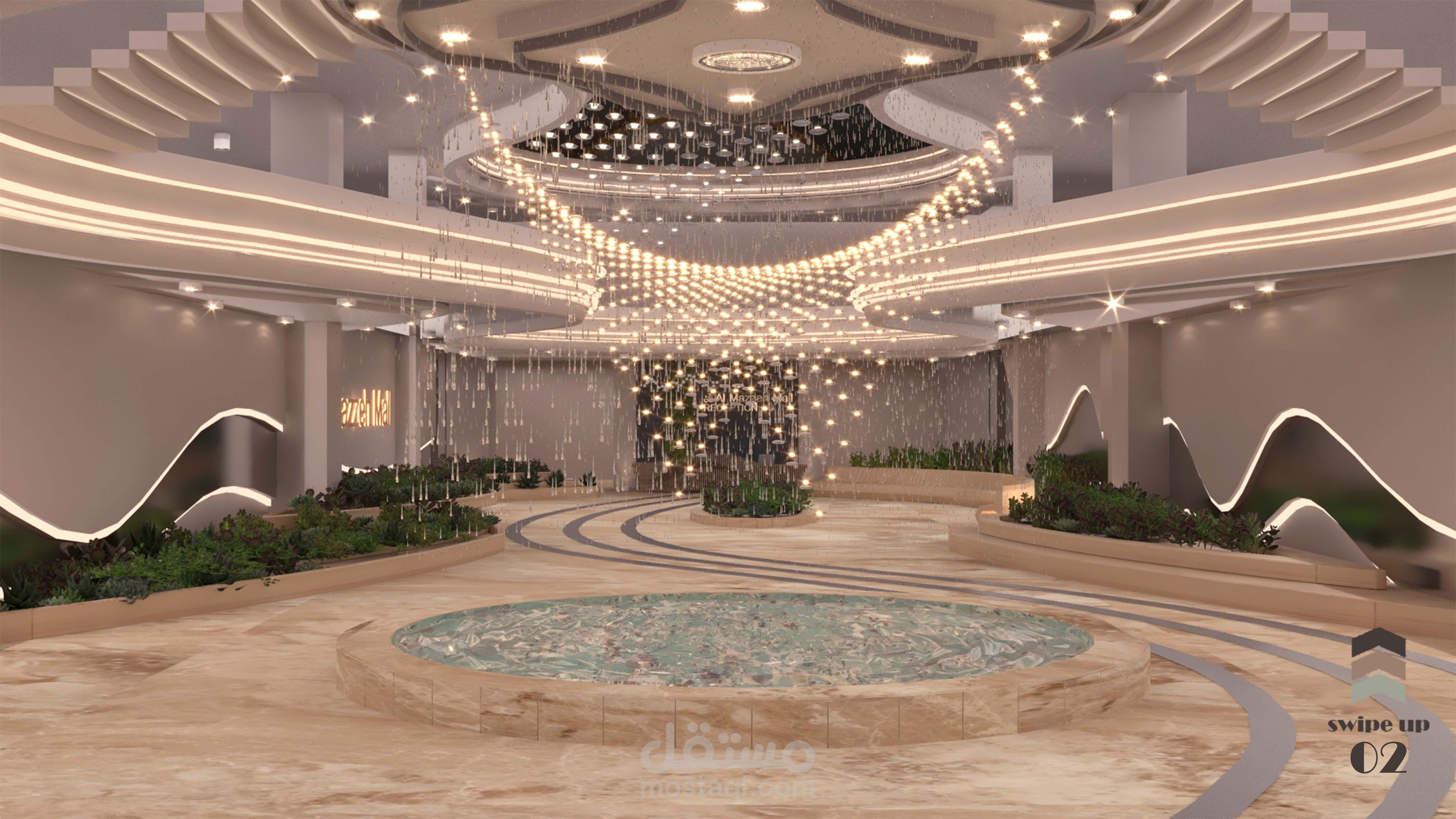 تصميم داخلي لفراغ صالات أفراح بالاعتماد على الاضاءة كفكرة تصميمية بسبب ظروف المشروع بناءاََ على طلب العميل