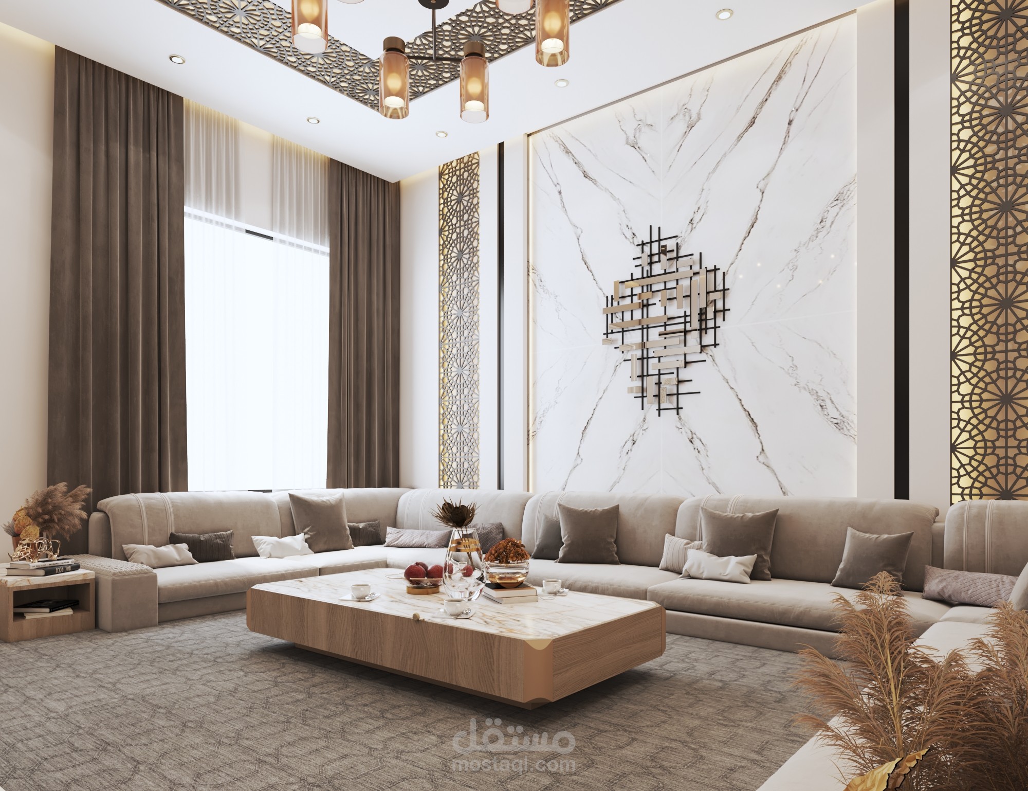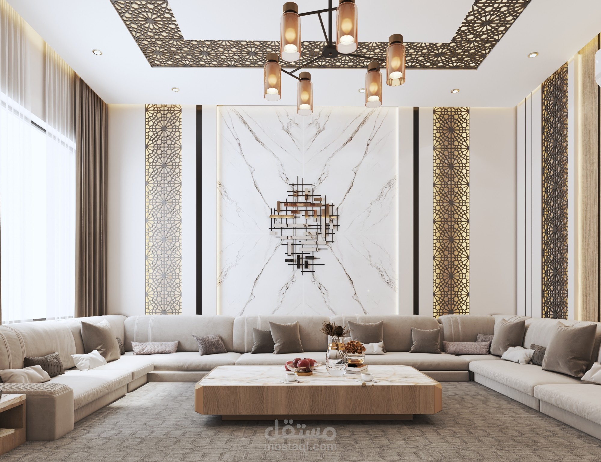 يتم تسليم العميل التصميم مع مخططات الفرش و الكهرباء و كافة لوحات اعمال التنفيذ