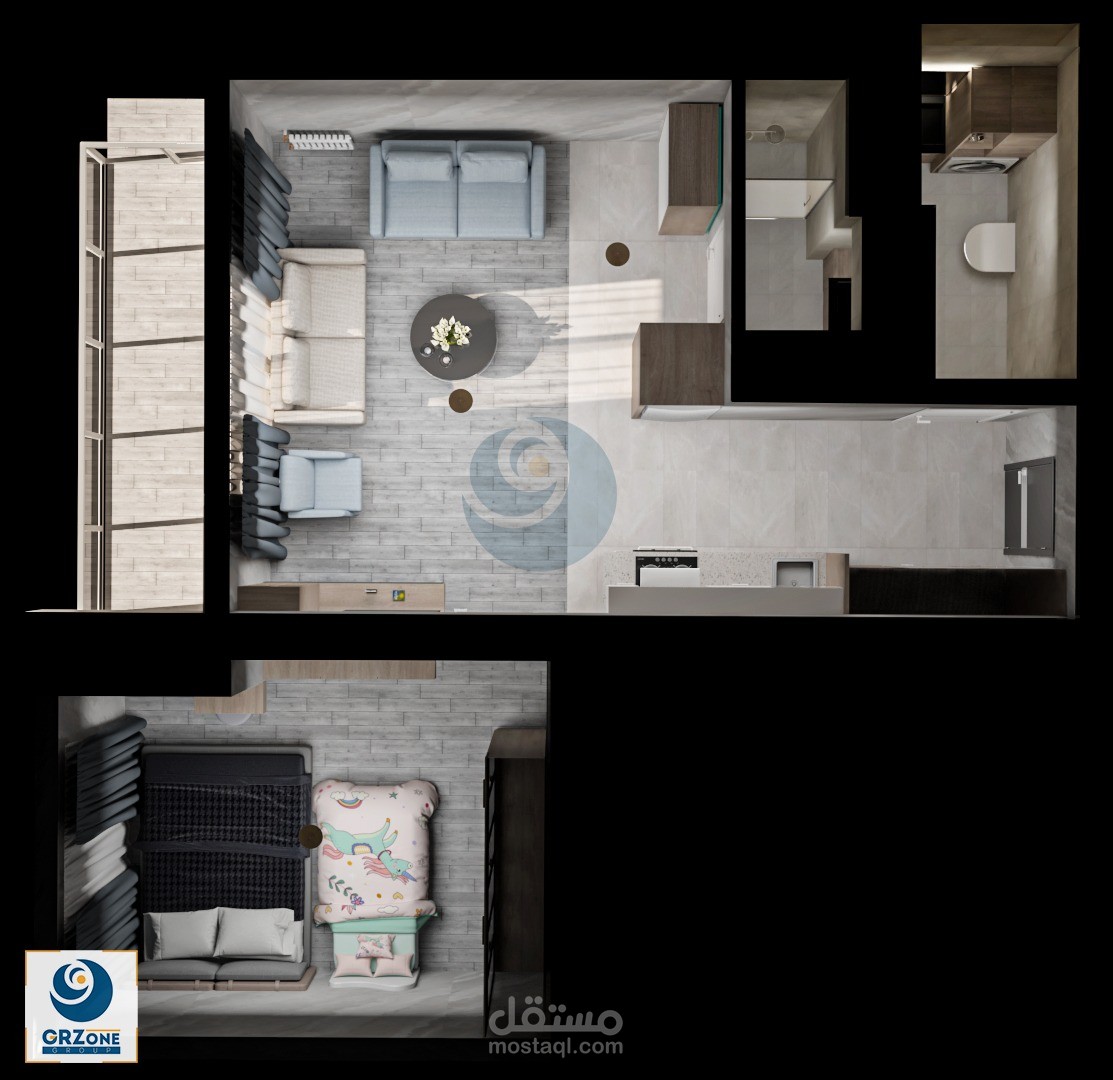 إعادة تصميم شقة سكنية 1+1 وتقديم حلول للمساحة باسلوب مبتكر