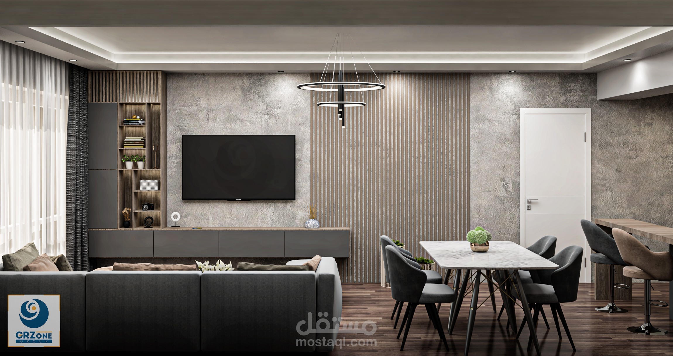 تم اختيار النمط العصري مع لمسات بسيطة للاستفادة من ضيق المساحة في الشقة وتجديدها لتكون ملائمة للمعيشة