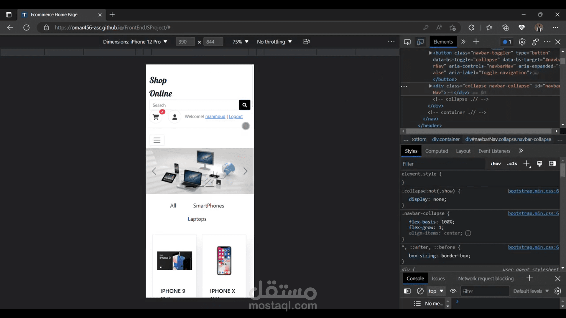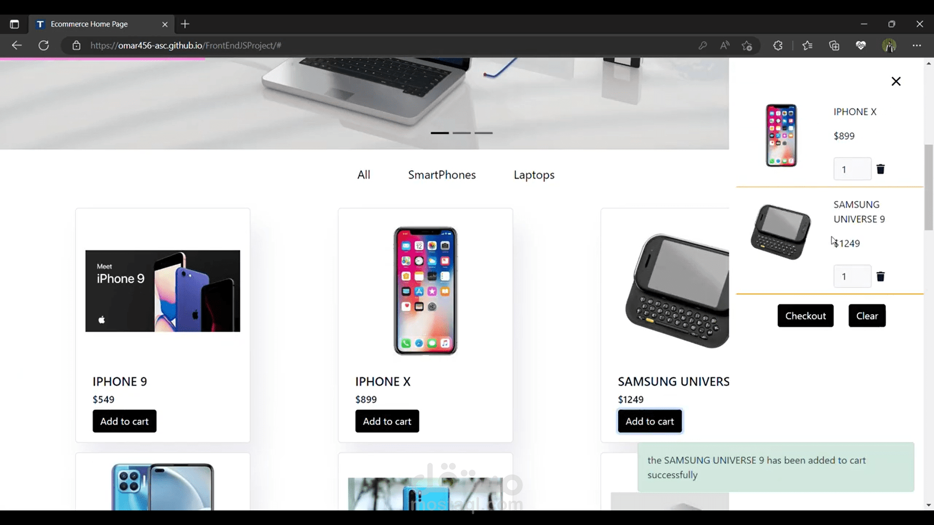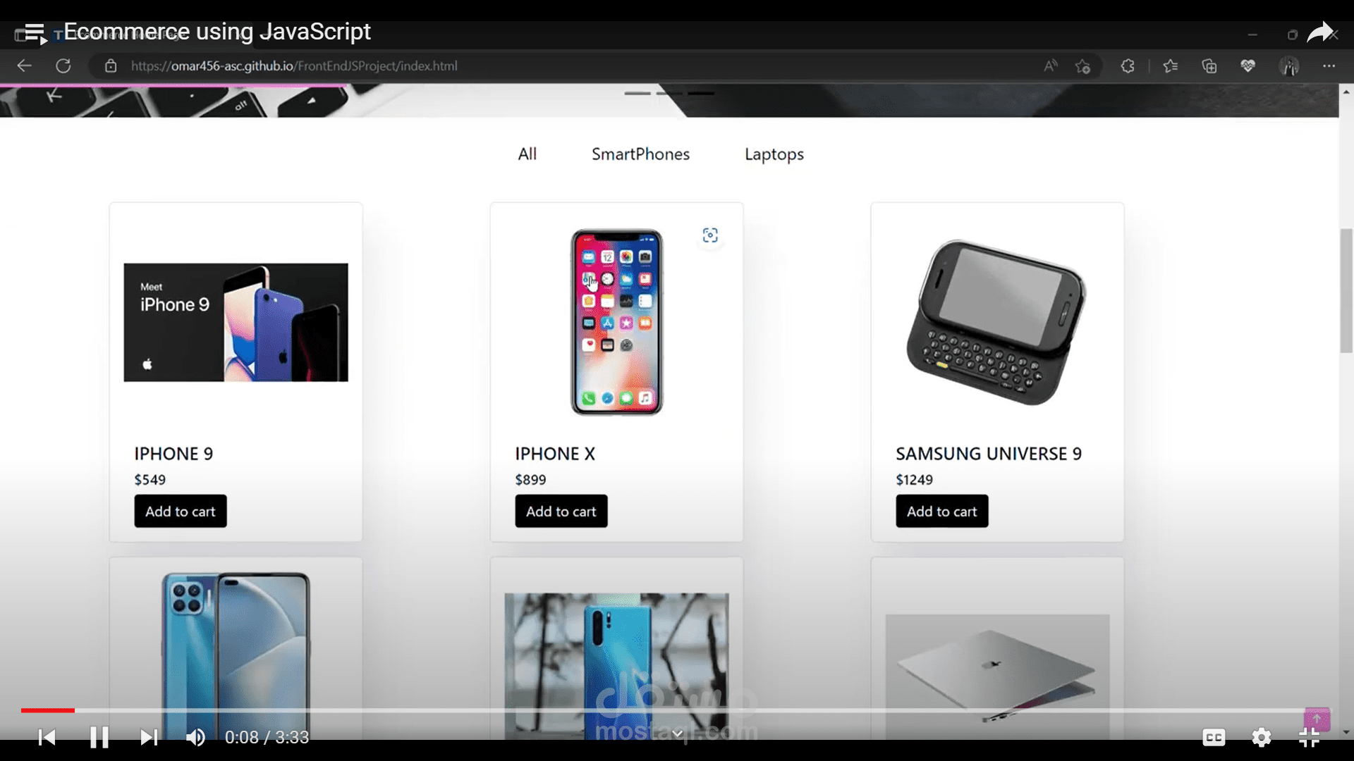 Filter products based on categories (All/Smartphone/Laptops)