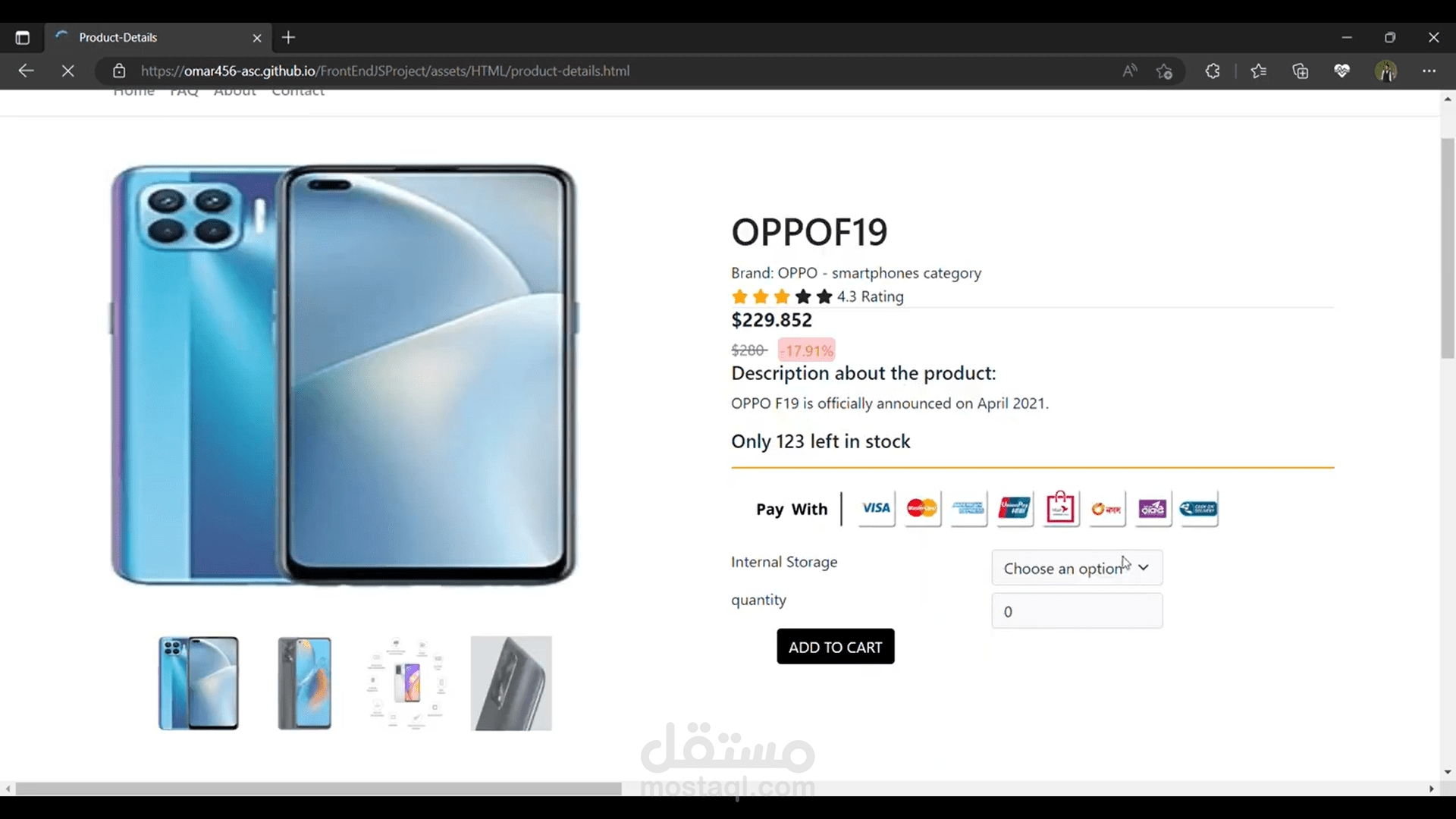 Click on any product to show its details with the ability to be added to cart