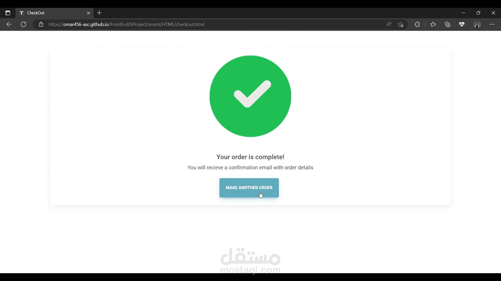 Thanks for Purchase will appear