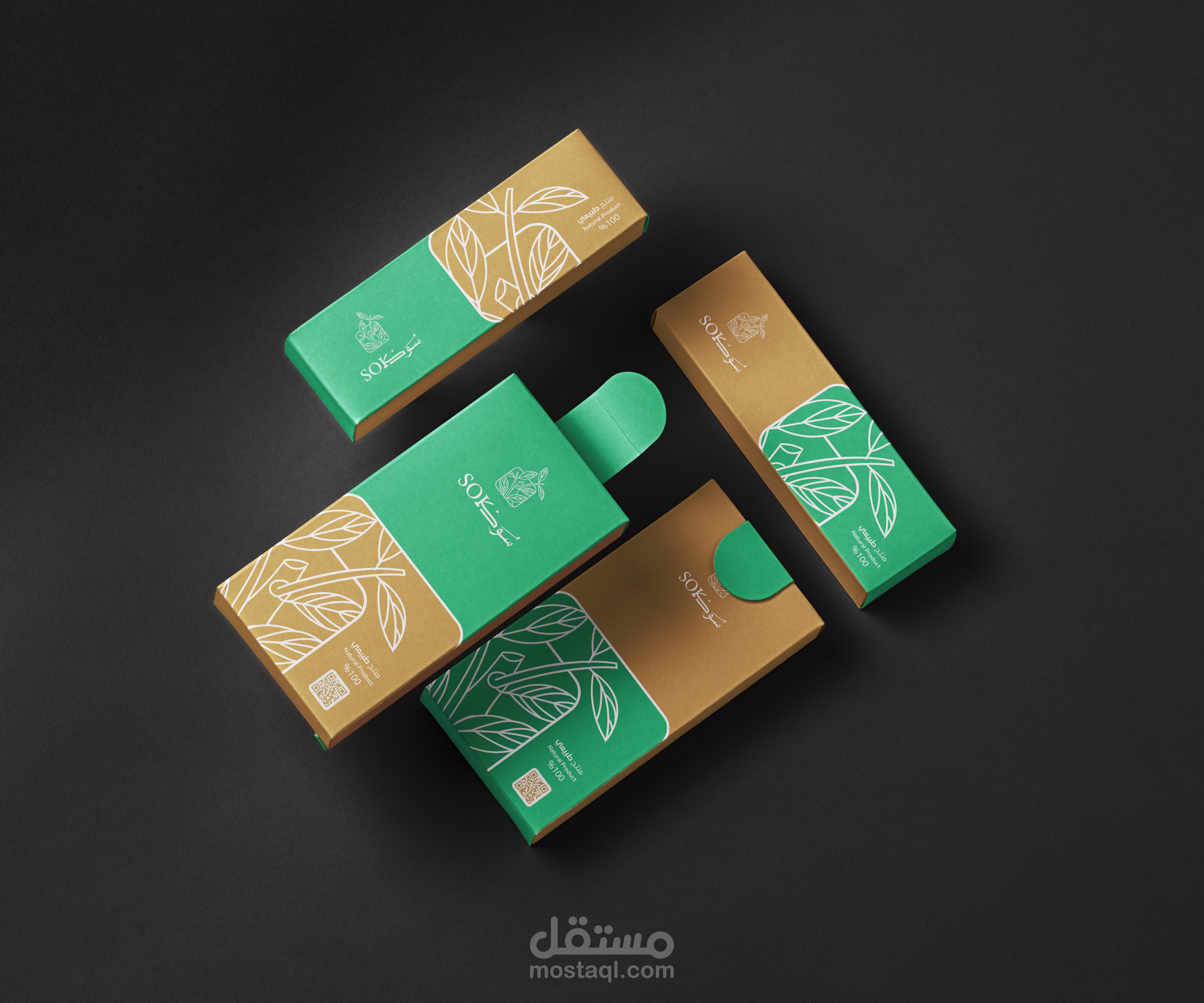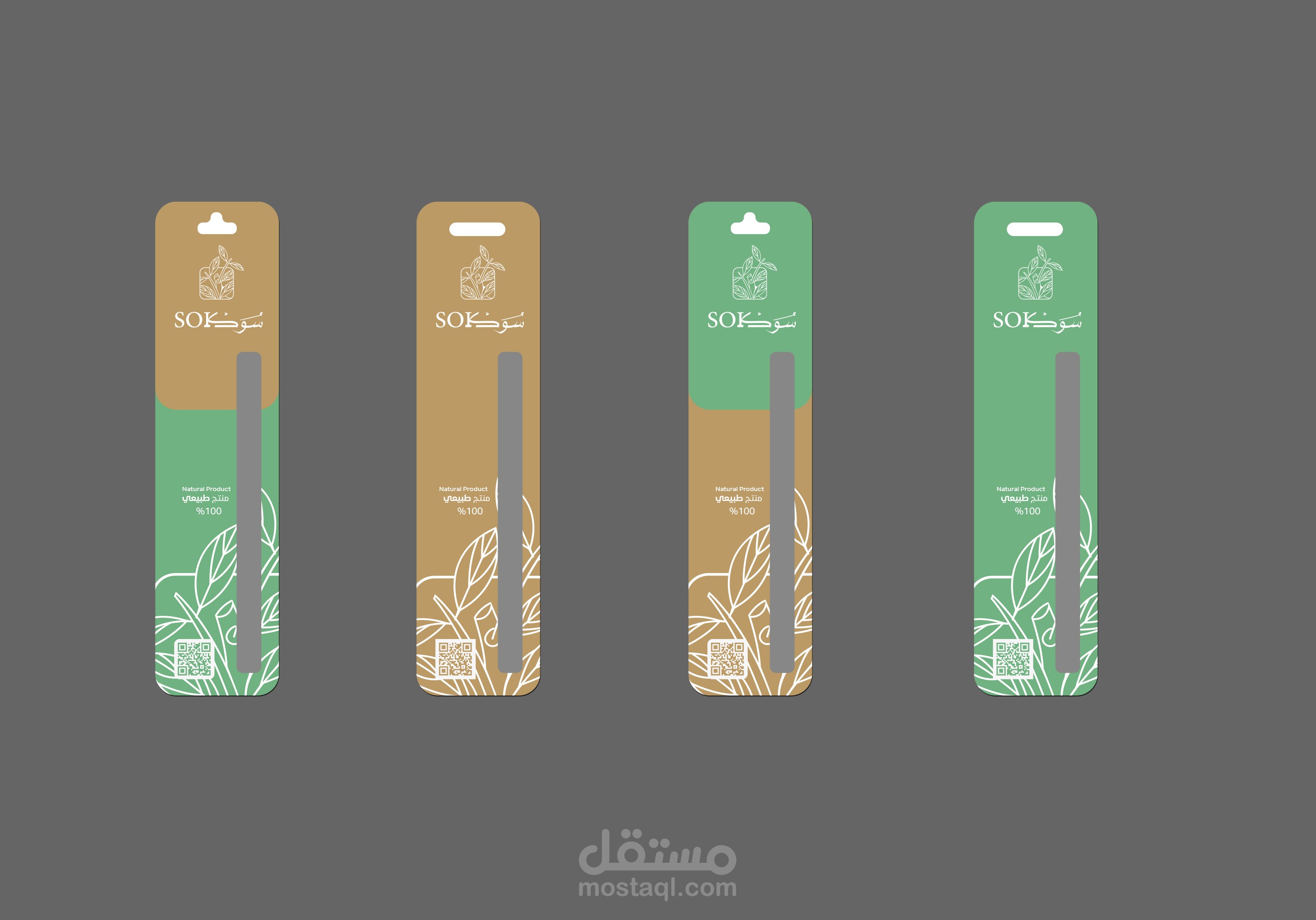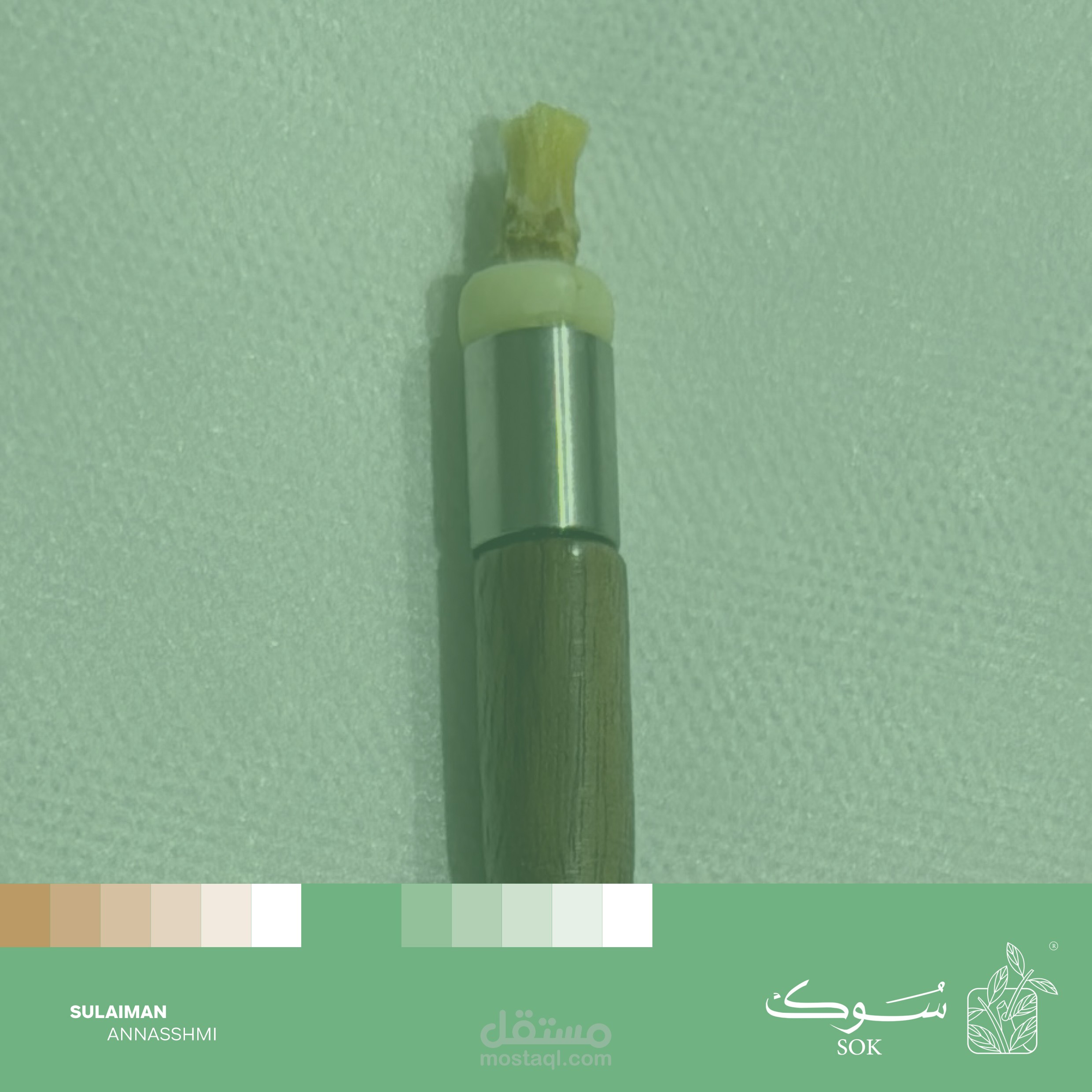 الأيقونة ، تبسيط رسم المنتج ودمجة بأوراق وغصن الأراك كونها محور الهوية " الطبيعة "