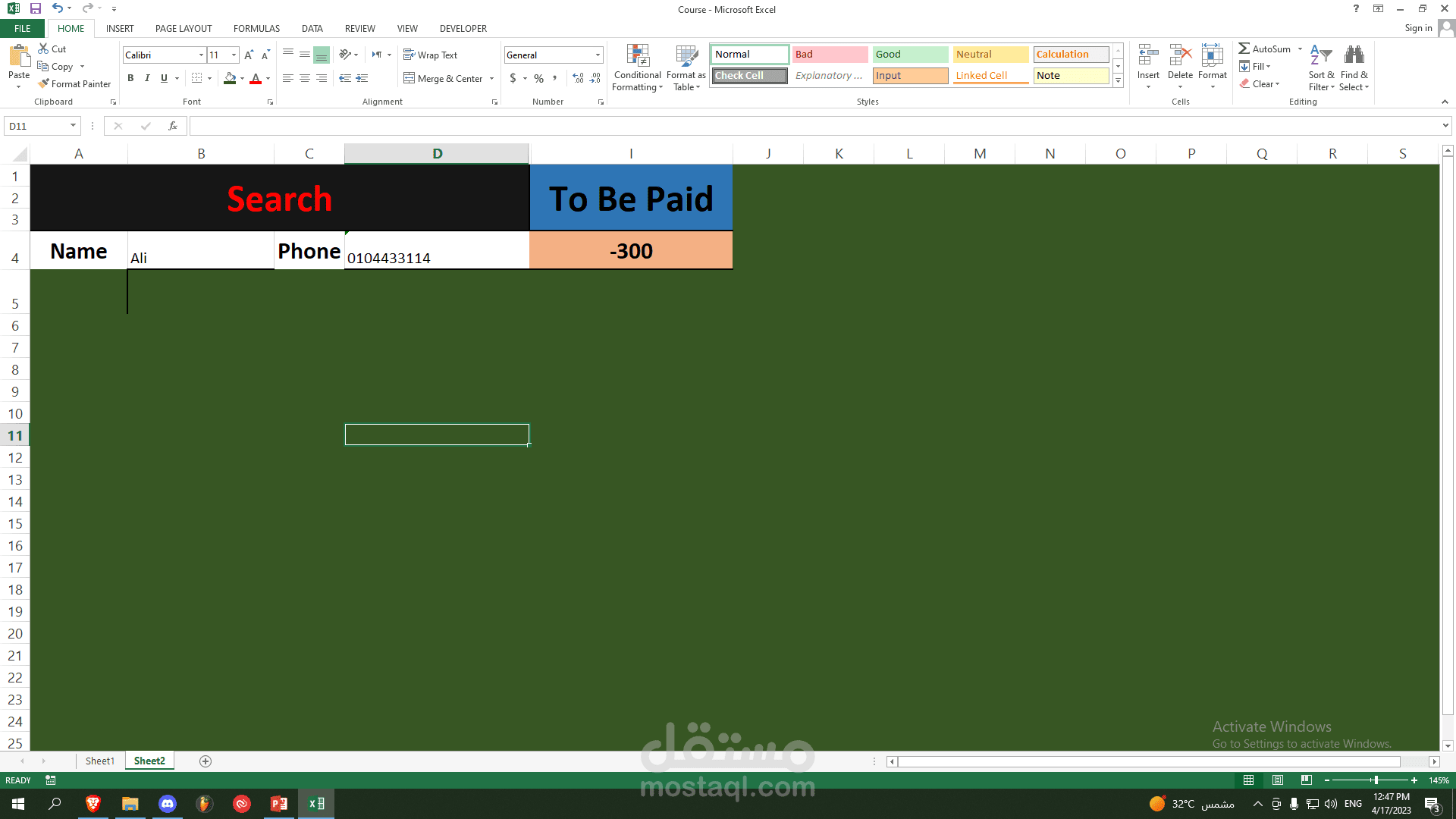 شيت ايكسل يعمل على