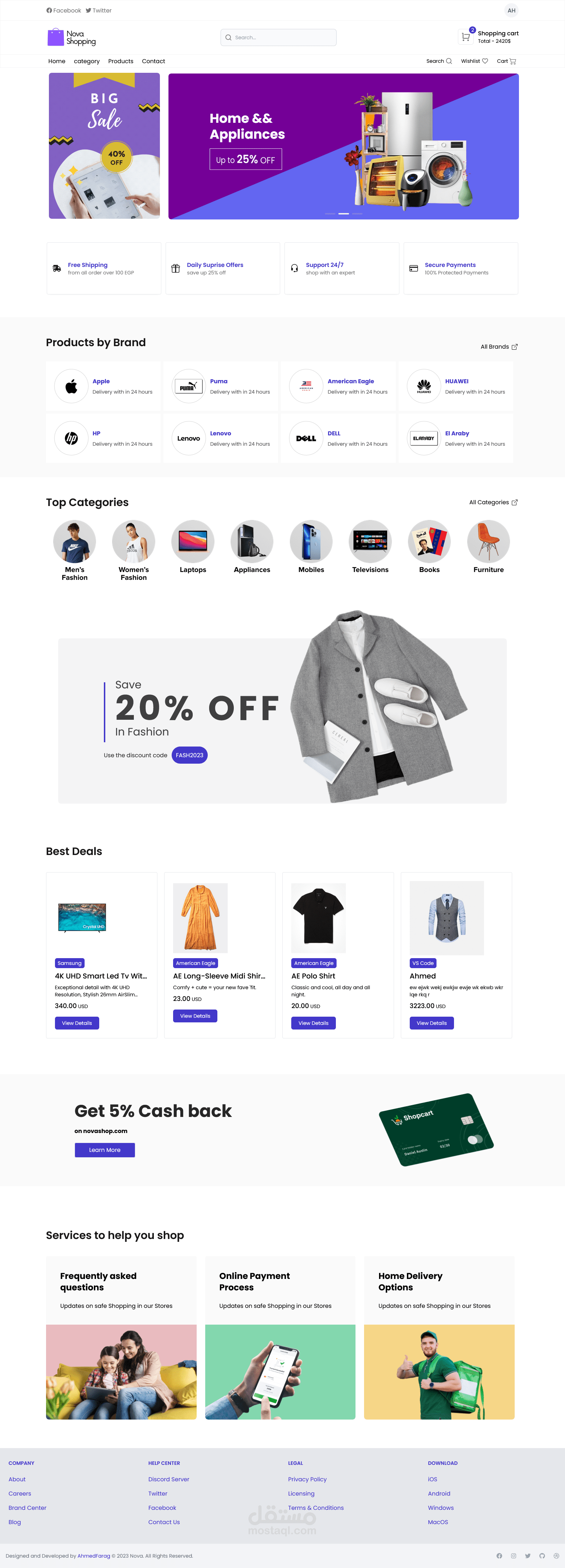 تستطيع اضافه منتجات وبراندات وتصنيفات وعرضهم في الموقع والبحث عن المنتجات