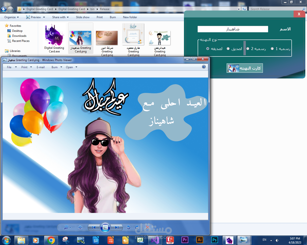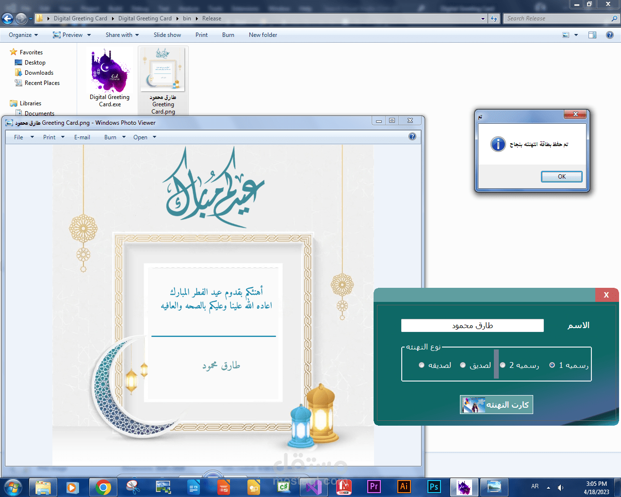 برنامج لتصاميم بطاقات تهنئة العيد تلقائيا.
