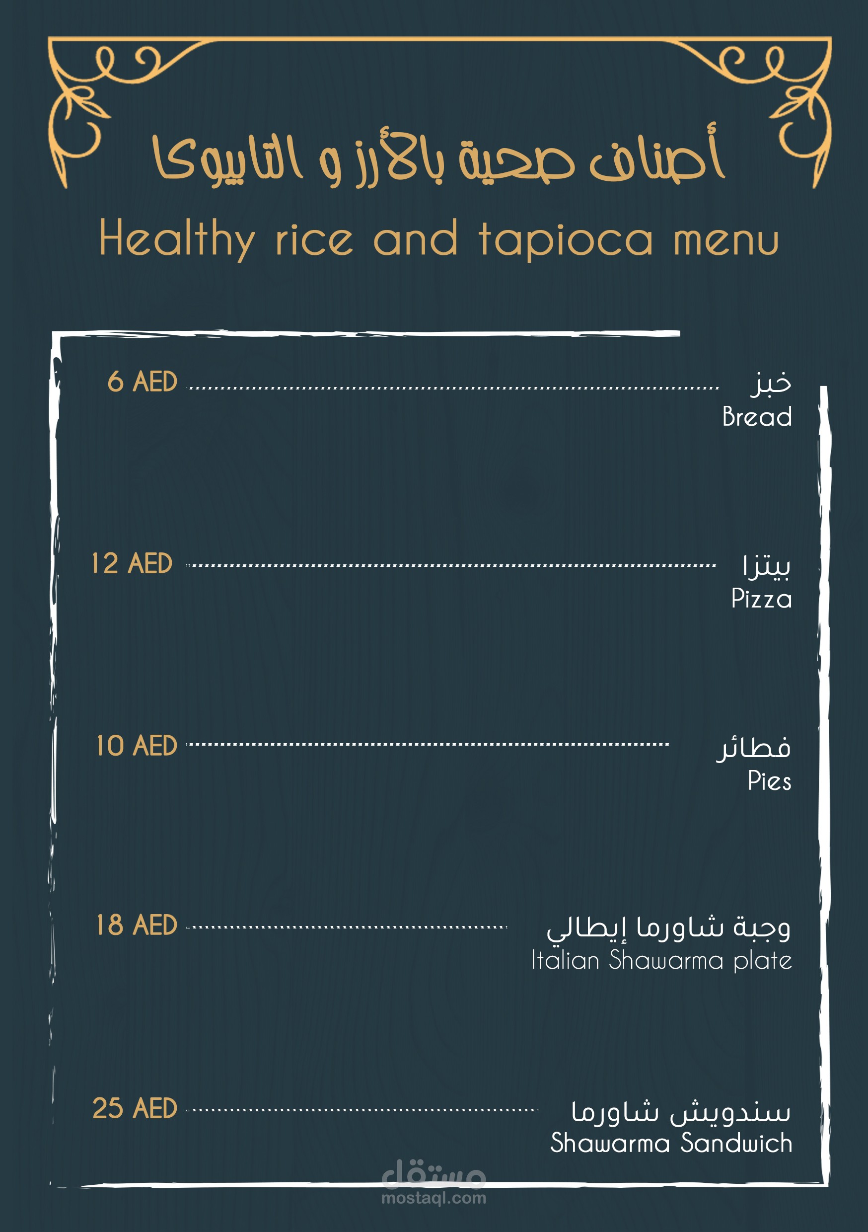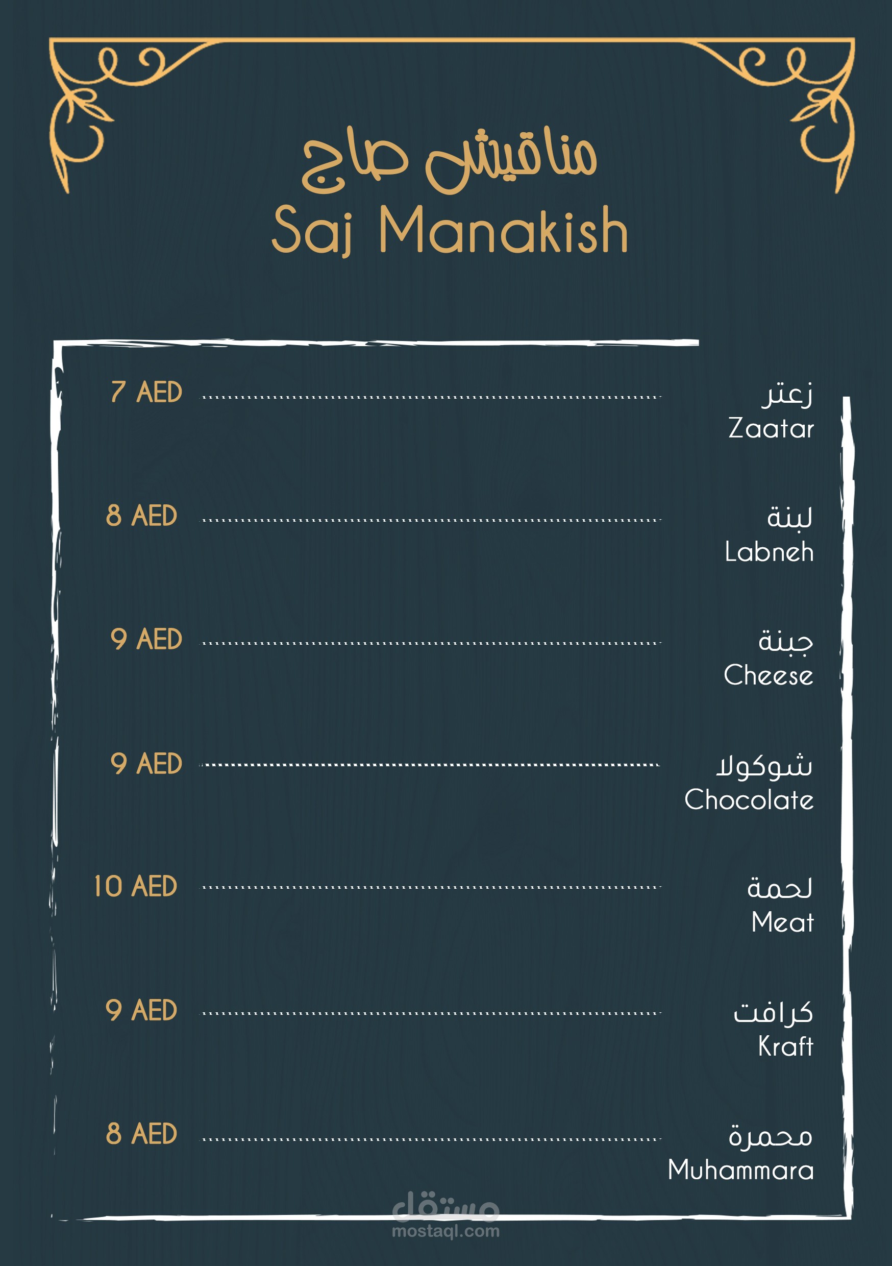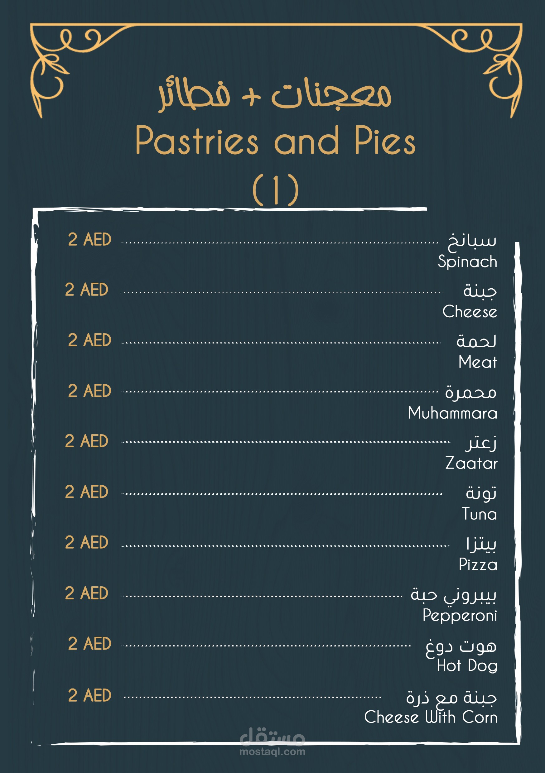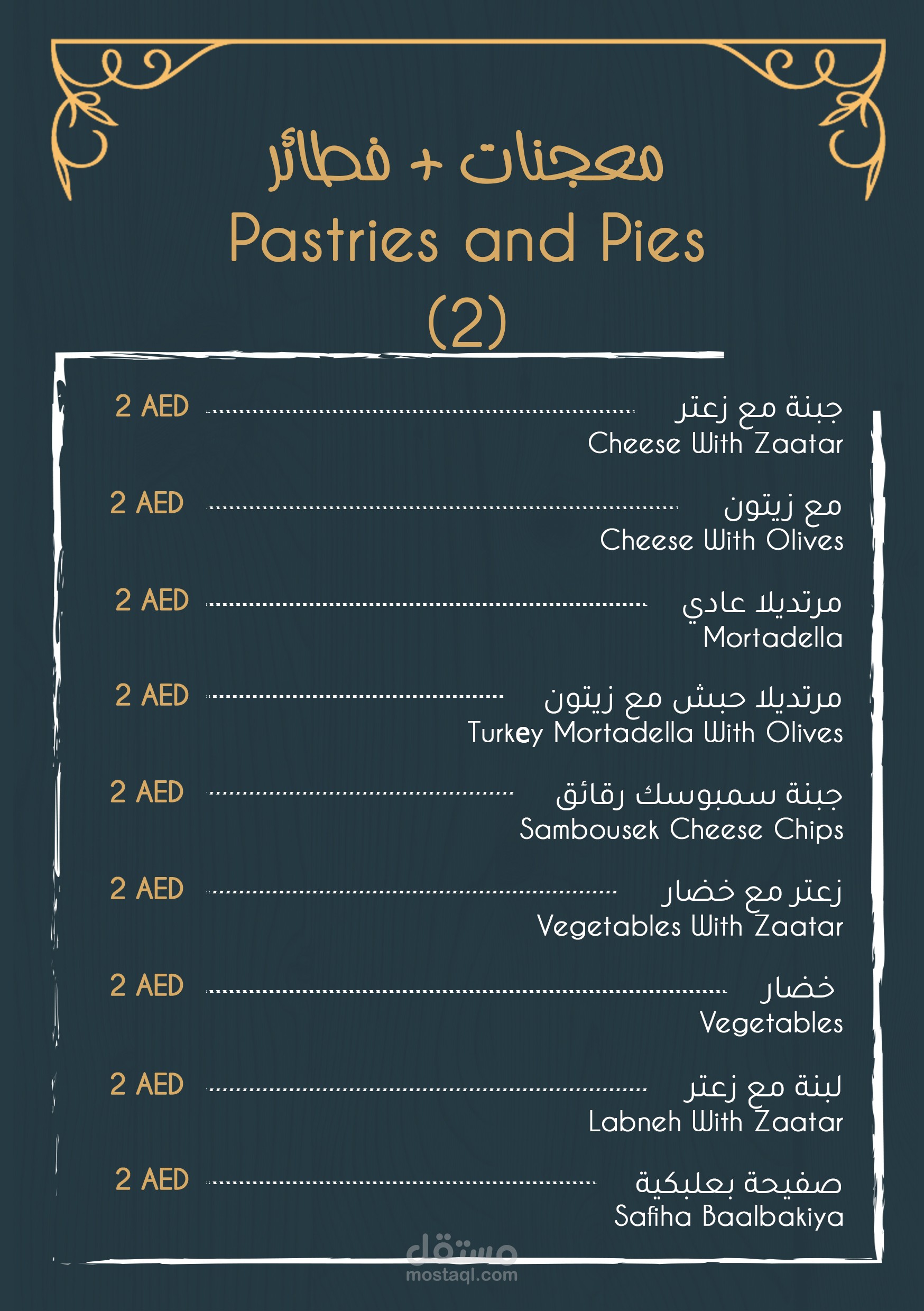 Menu / مينو مطعم أكلات شامية مخصص لصفحة فيسبوك