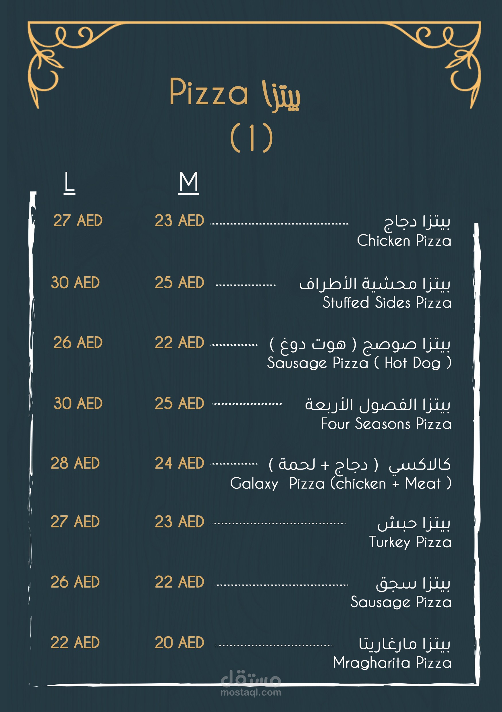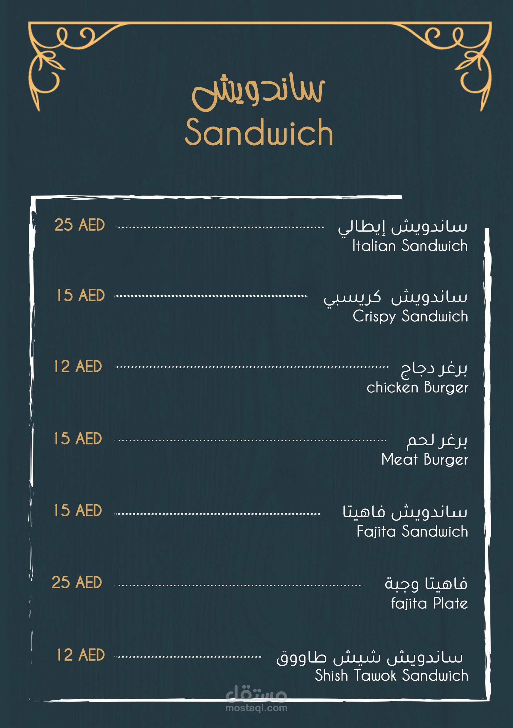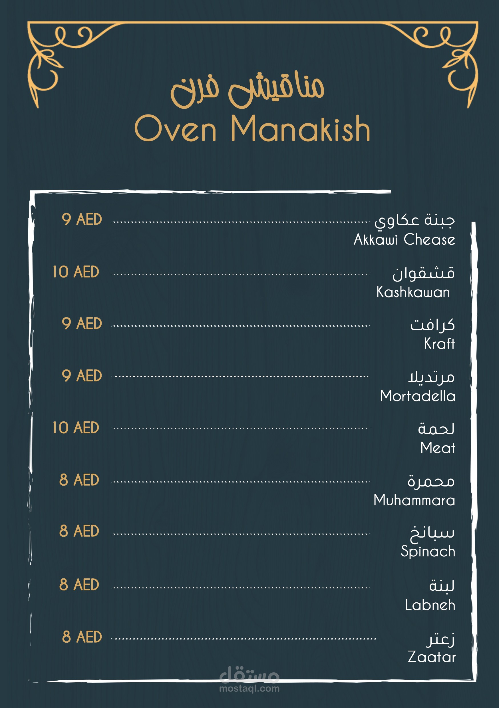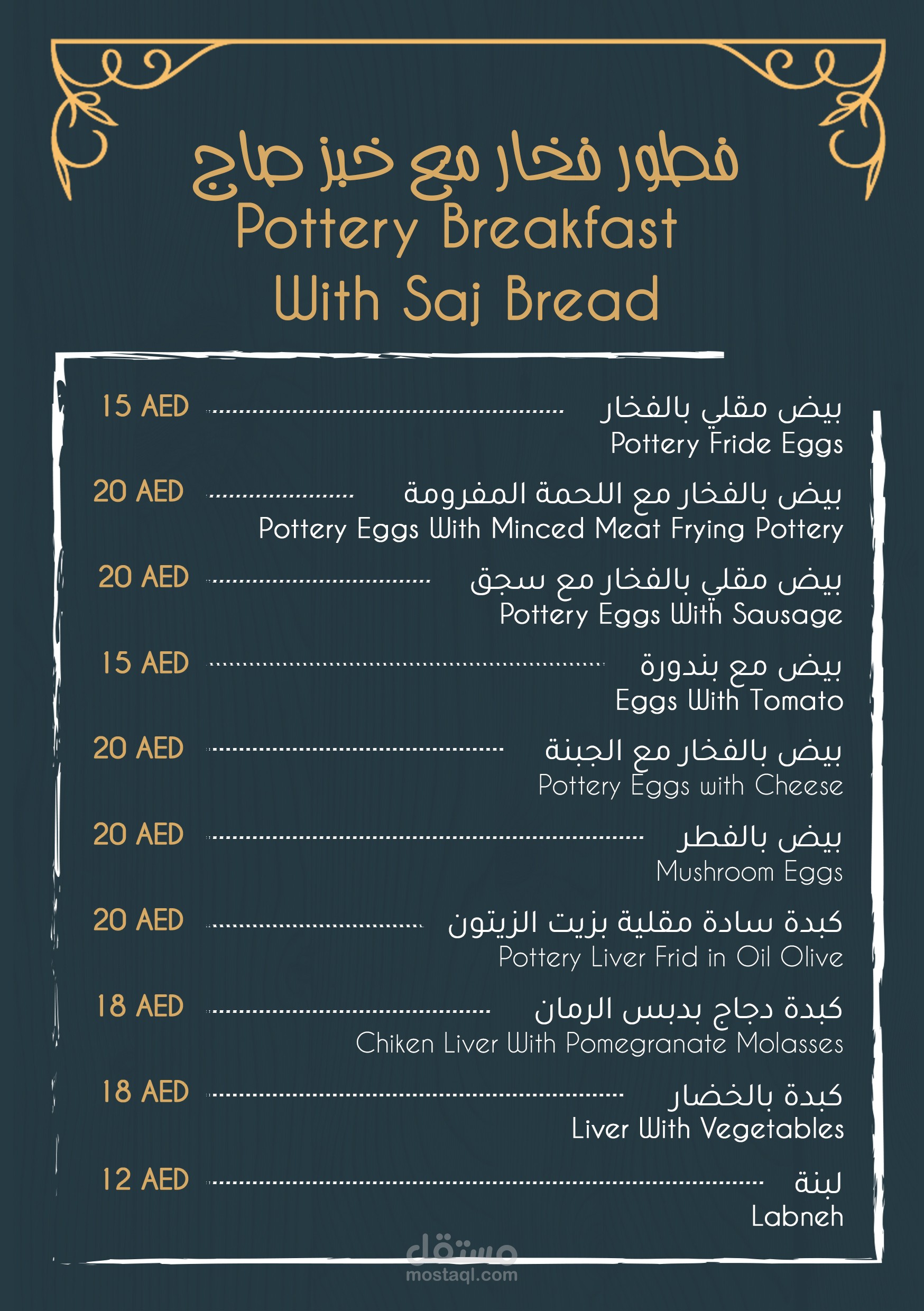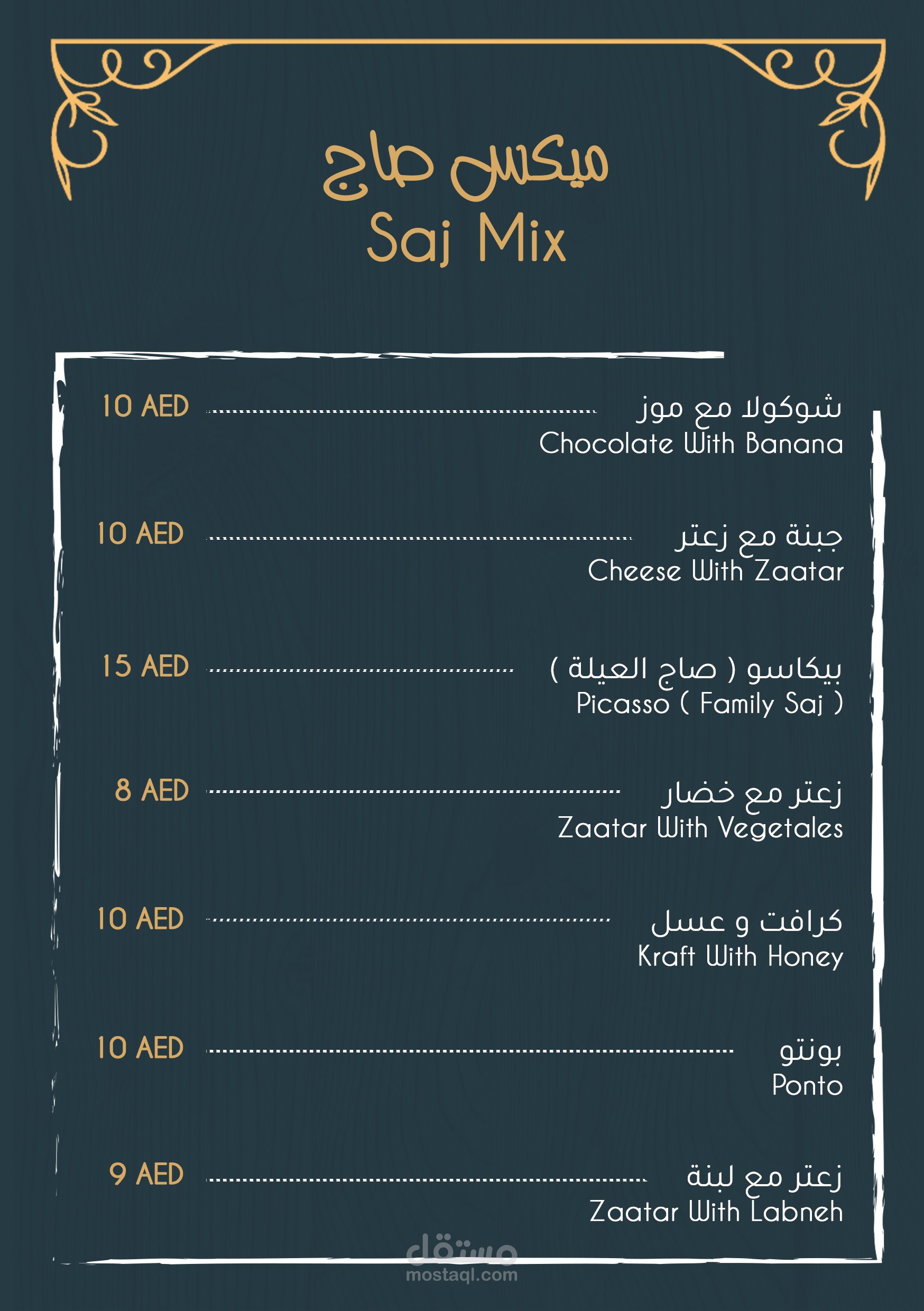 Menu / مينو مطعم أكلات شامية مخصص لصفحة فيسبوك